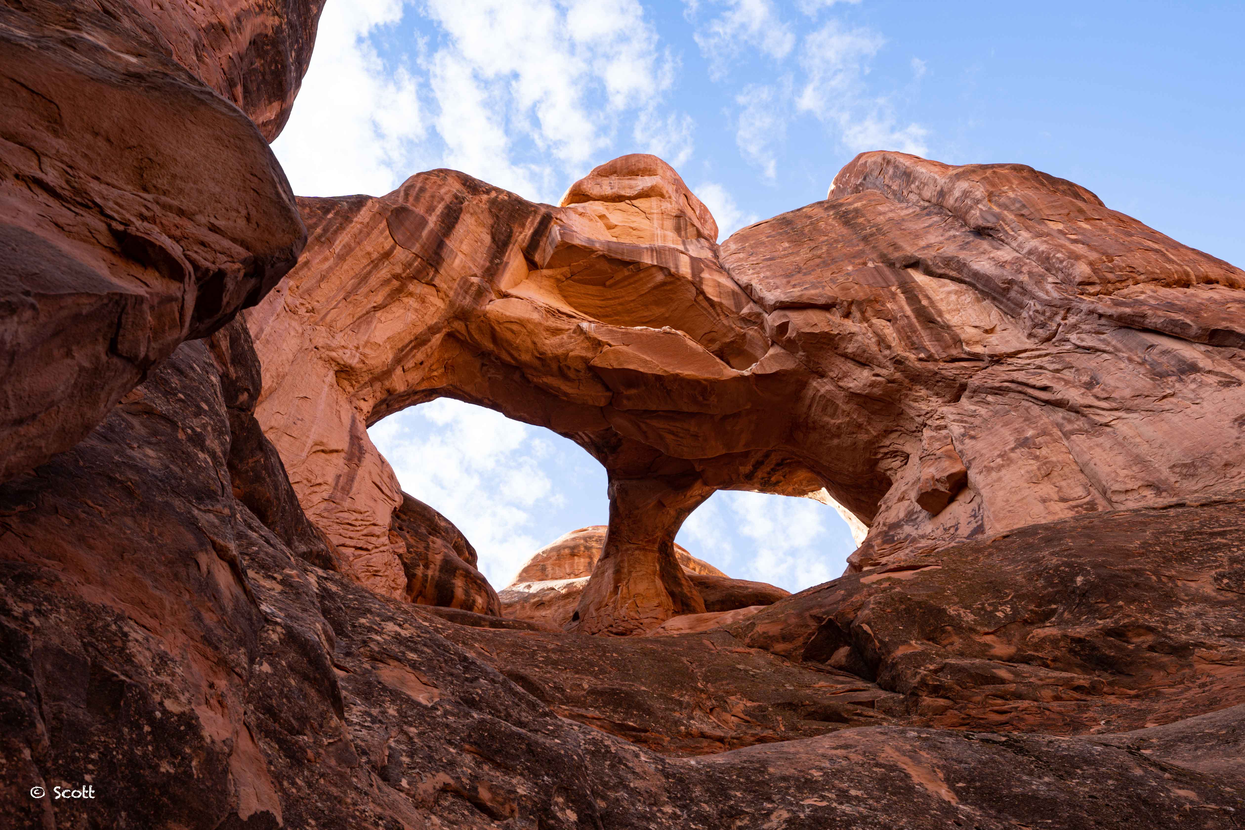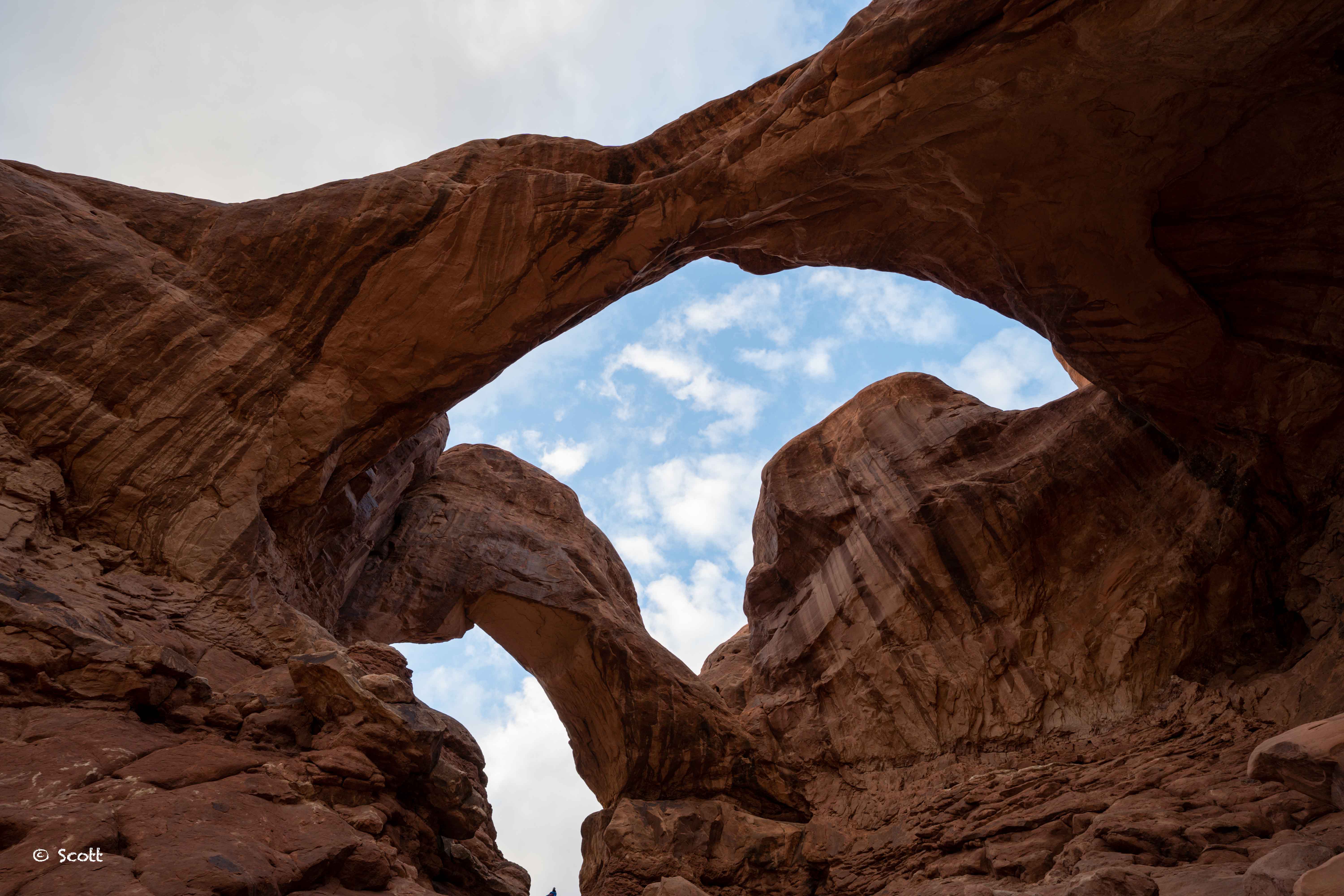 既然拱门国家公园叫Arches National Park用了复数,自然有好多拱门。两个拱门连在一起的Double Arches也是值得打卡的一处景点,这个景点就在路边,走几步就到。