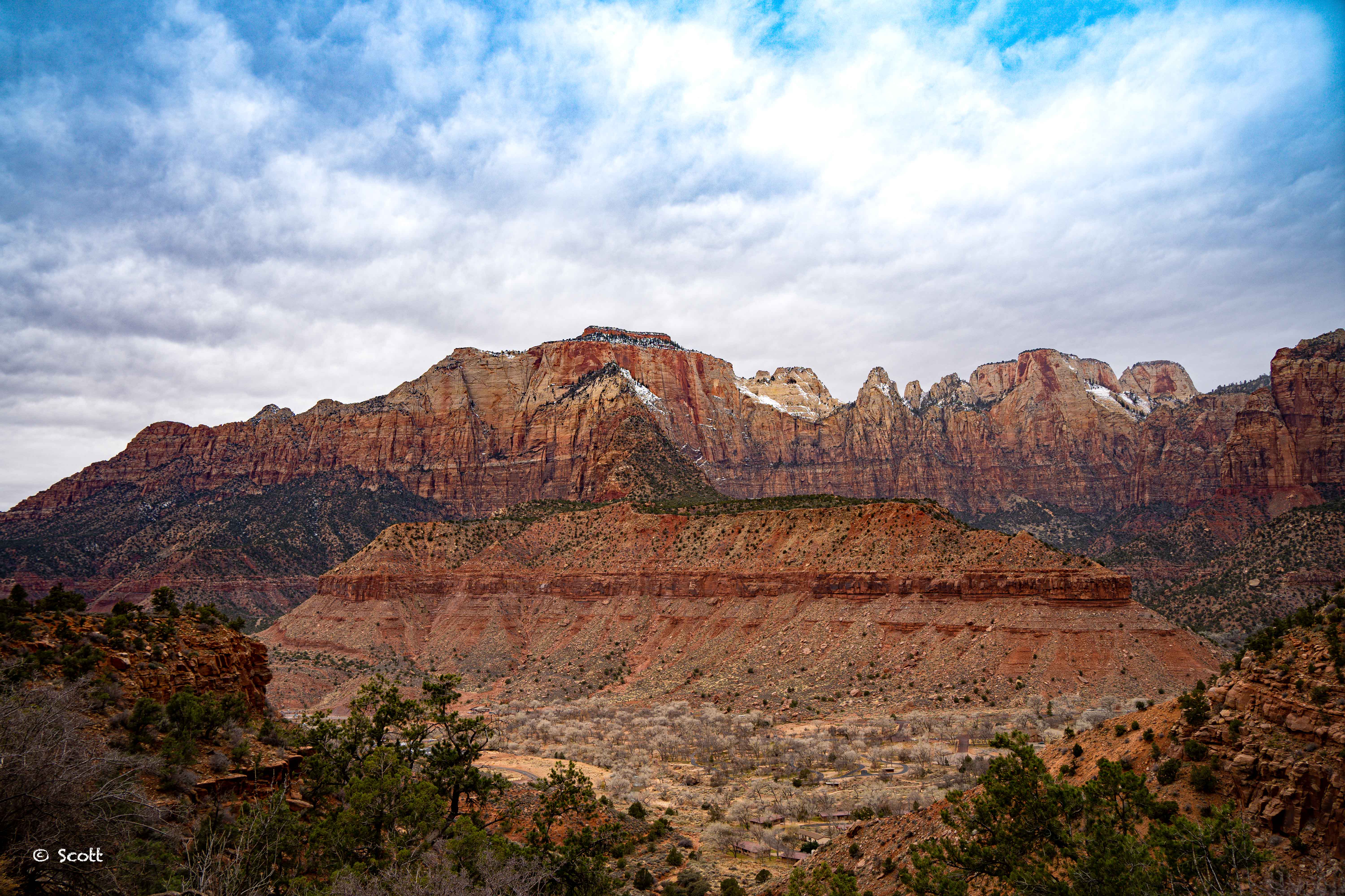 只有一天时间给Zion,加上Zion西线暴雪封路,我们只好玩了几条简单的步道… 下图是游客中心附近3.1 miles moderate难度的Watchman trail,感觉照出的景观不及现场看到的沁人心脾 ![]()