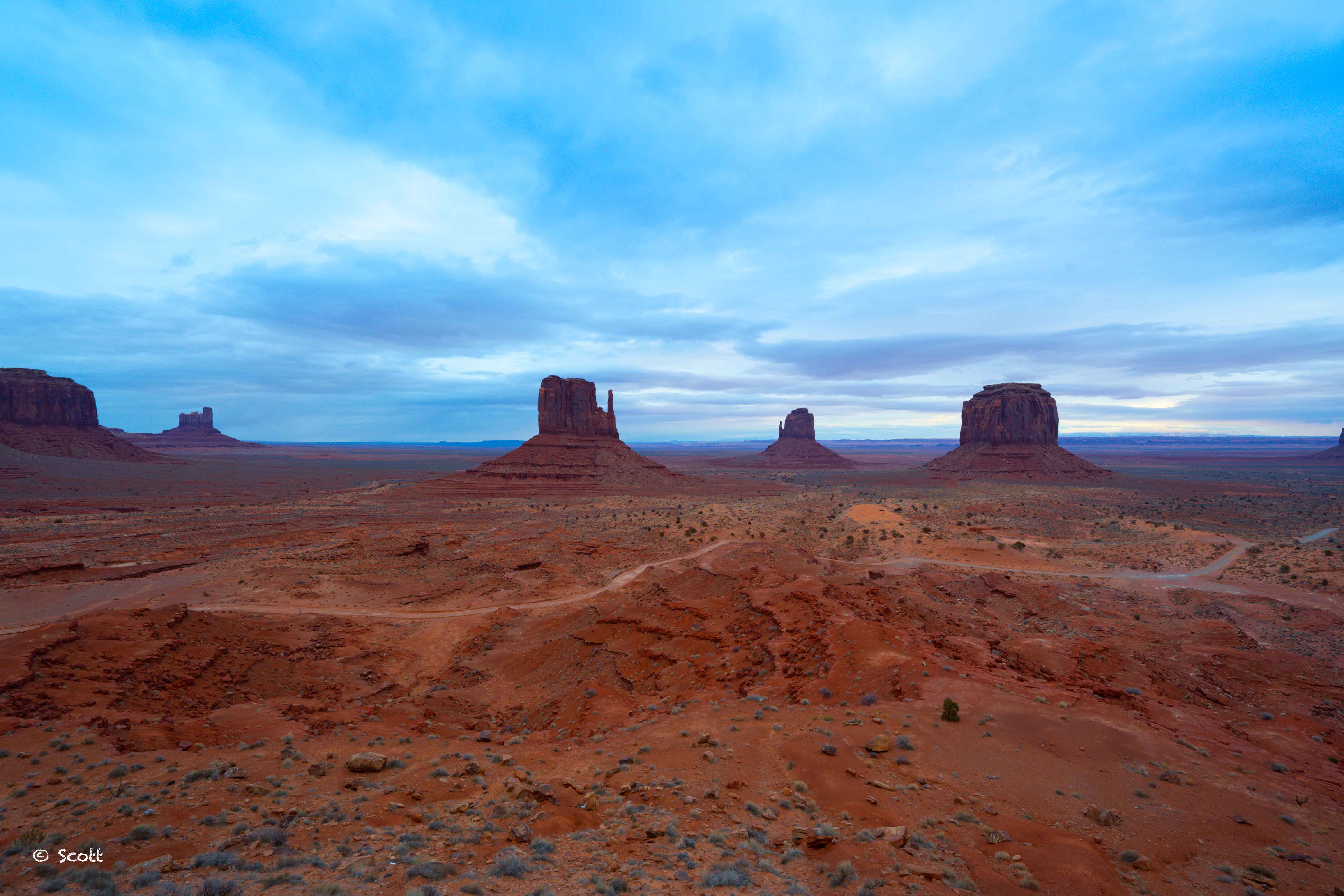 早上站在阳台照了一张,当日阴天,不然可以拍到纪念碑谷日出和日照金山的美景。