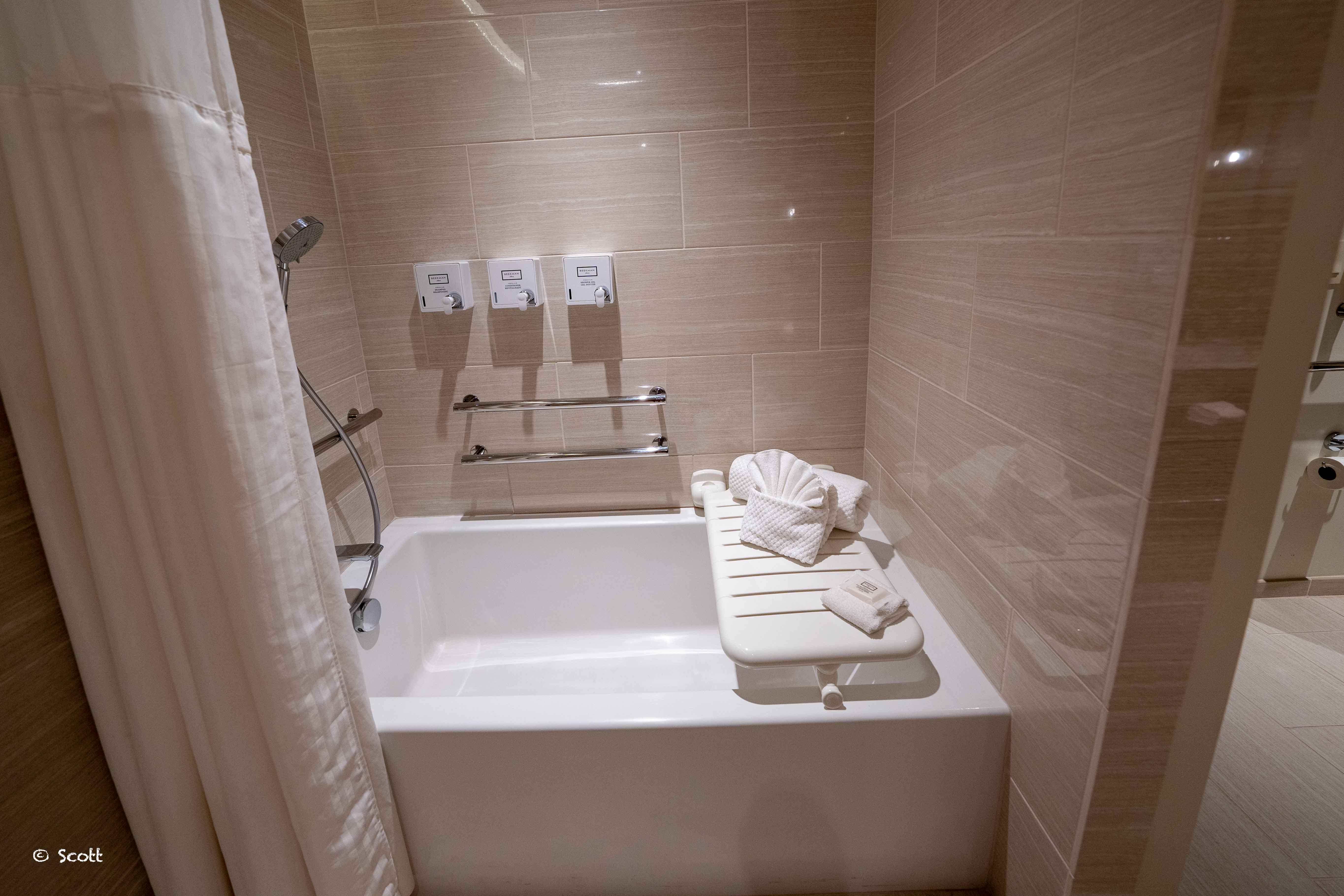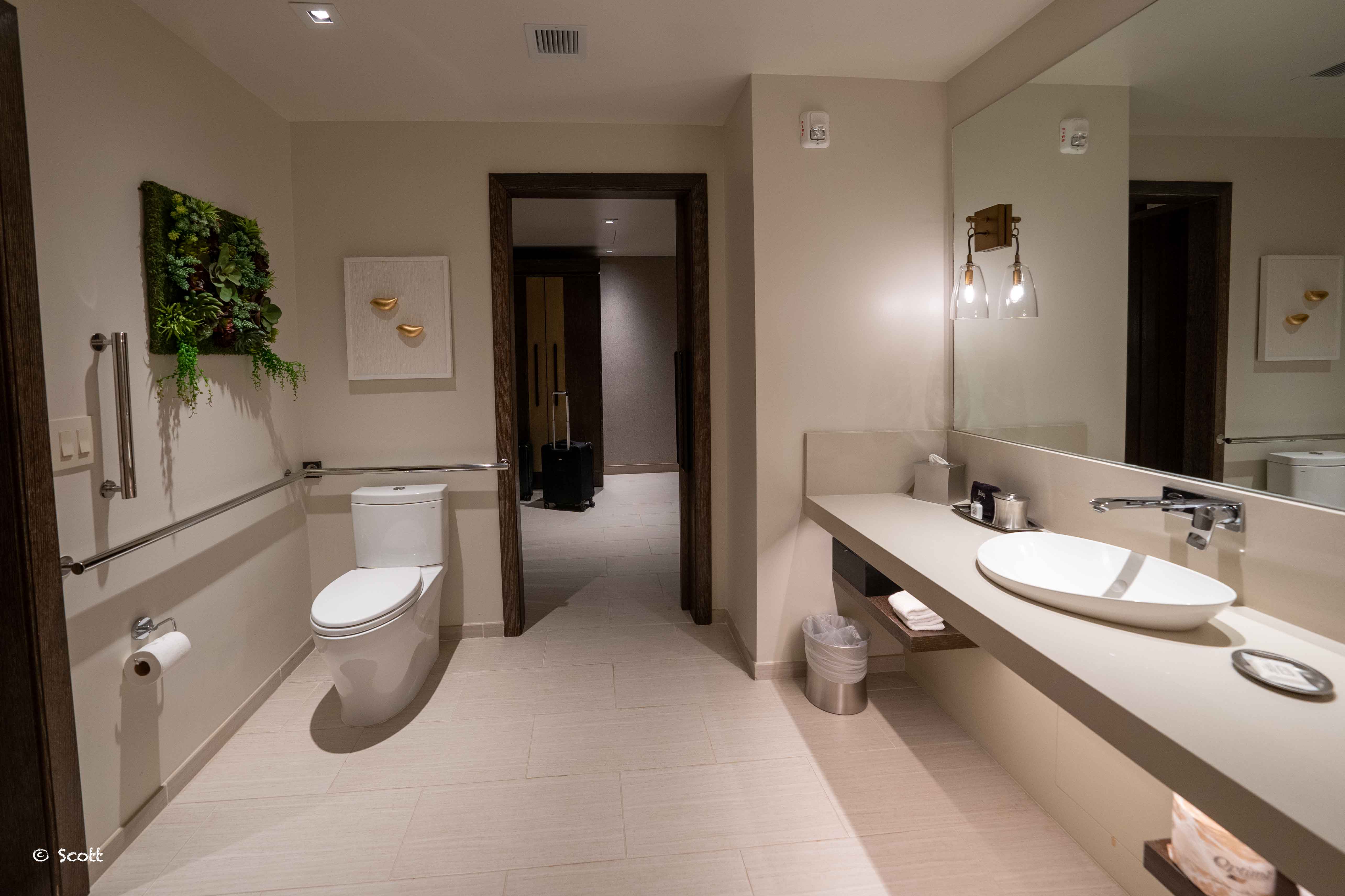 不知道是不是disability专用的房间,虽说有一些辅助设施,但并没有在墙上找到紧急按钮,记得disability专用房间的浴室和马桶旁边都要有紧急按钮 ![]()