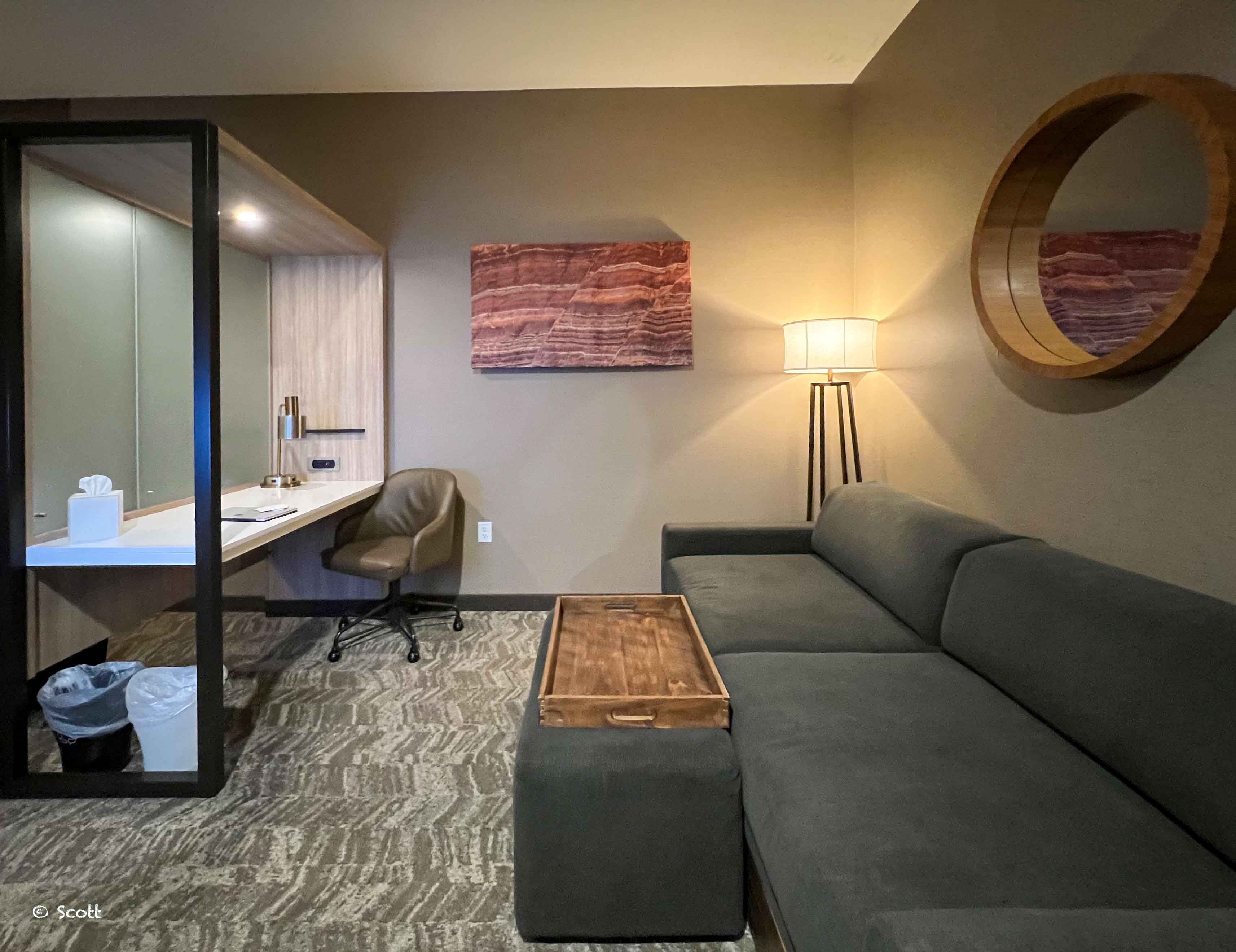 这家酒店就在Zion国家公园入口所在的小镇Springdale,Zion国家公园附近酒店溢价严重,虽然是Springhill Suite但是属于cat 6,感觉即便是在圣诞旺季,积分兑换也不那么合算,就现金入住了。