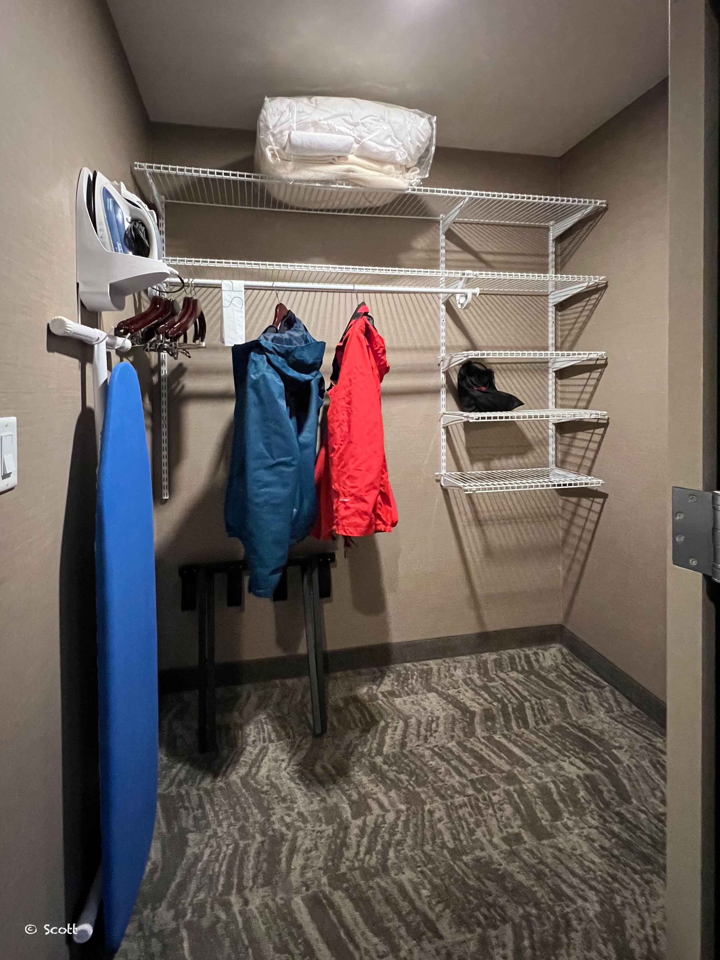 双床卧室,丝毫不感到拥挤。卧室和客厅各有一个衣橱,有浴袍和到外面泳池、hot tub用的浴巾。