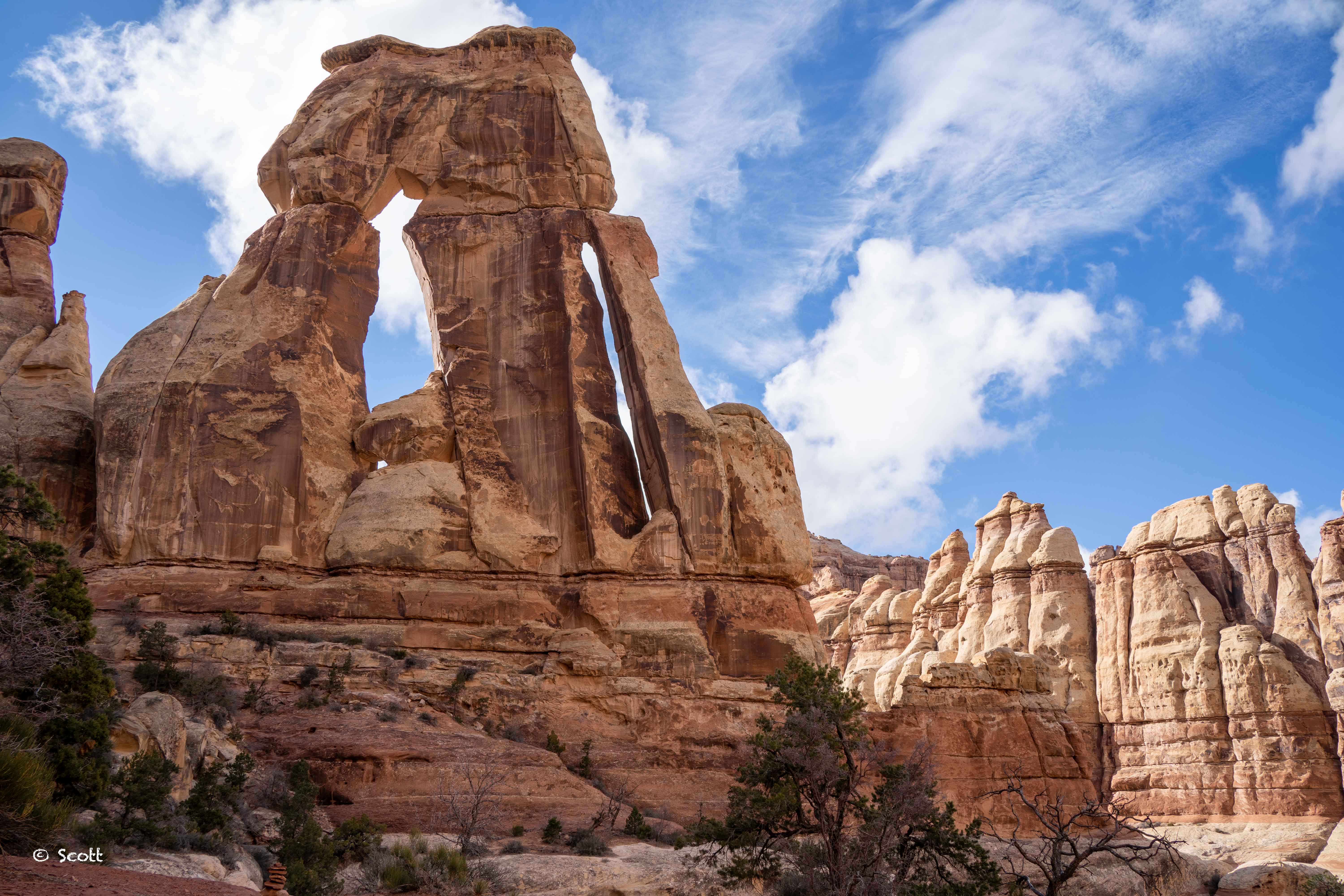 我们选择了更加适合徒步的Needles 景区,因为这里有Druid 德鲁伊拱门和 Chesler Park。两条都是单独走要8 miles的徒步但离得比较近,我们选择了12 miles hard难度的Druid Arch to Chesler Park trail一次性打卡两个景点。