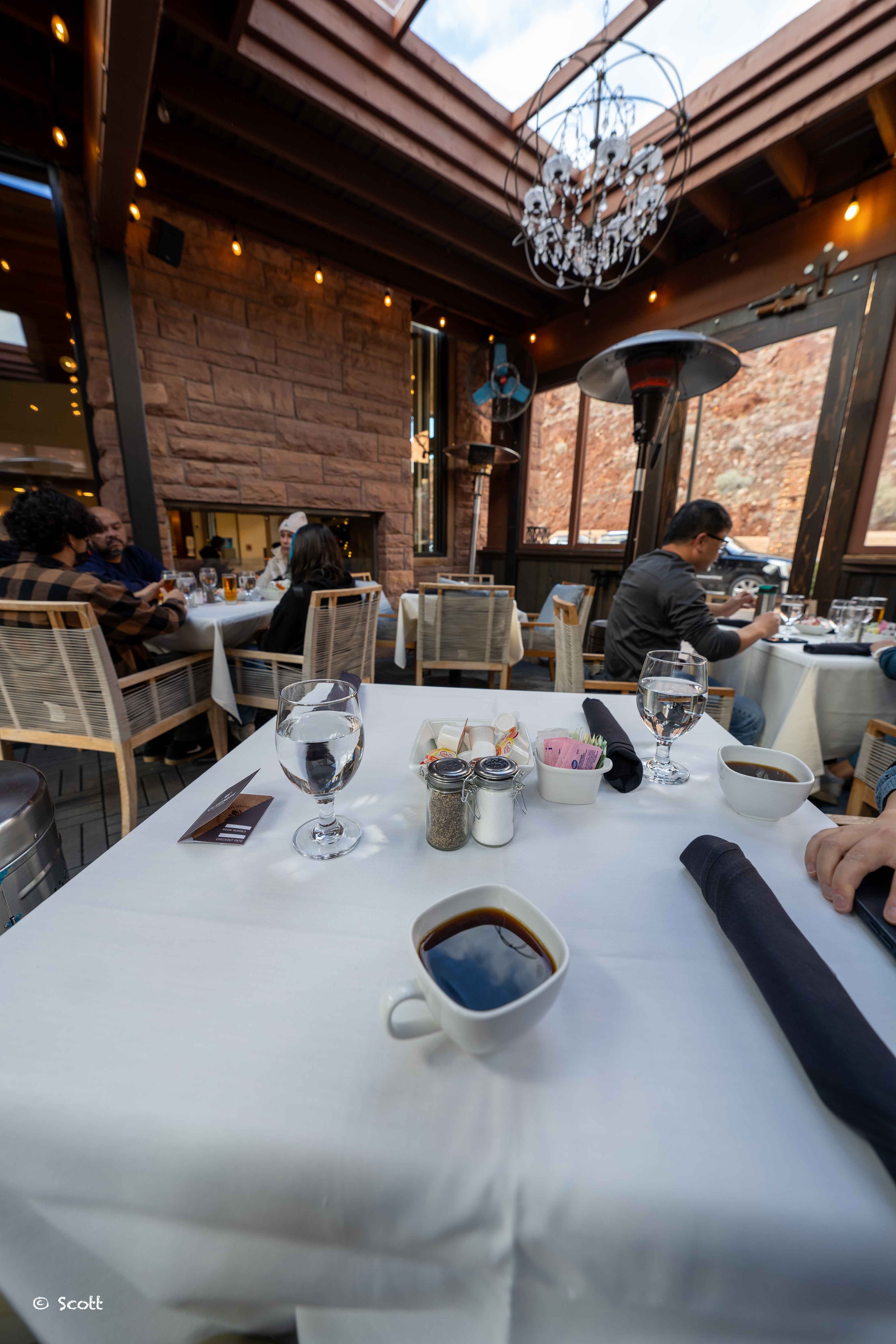 大堂有一处非常大的落地窗,正对Zion山脉,我们半夜check-in,天不亮check-out,没能拍到,相信白天景色会别具一格 ![]()