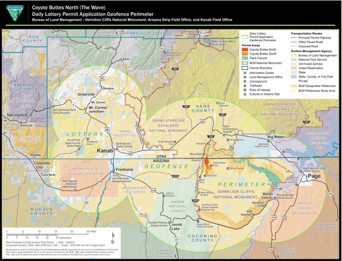 波浪谷归美国土地管理局(BLM)管辖,如果没有抽中擅闯波浪谷,可以受到罚款$1k-$10k、1个月监狱以及终身禁止抽签等处罚。来抽签可以考虑住在Kanab Hampton Inn(下面酒店体验写了原因)。