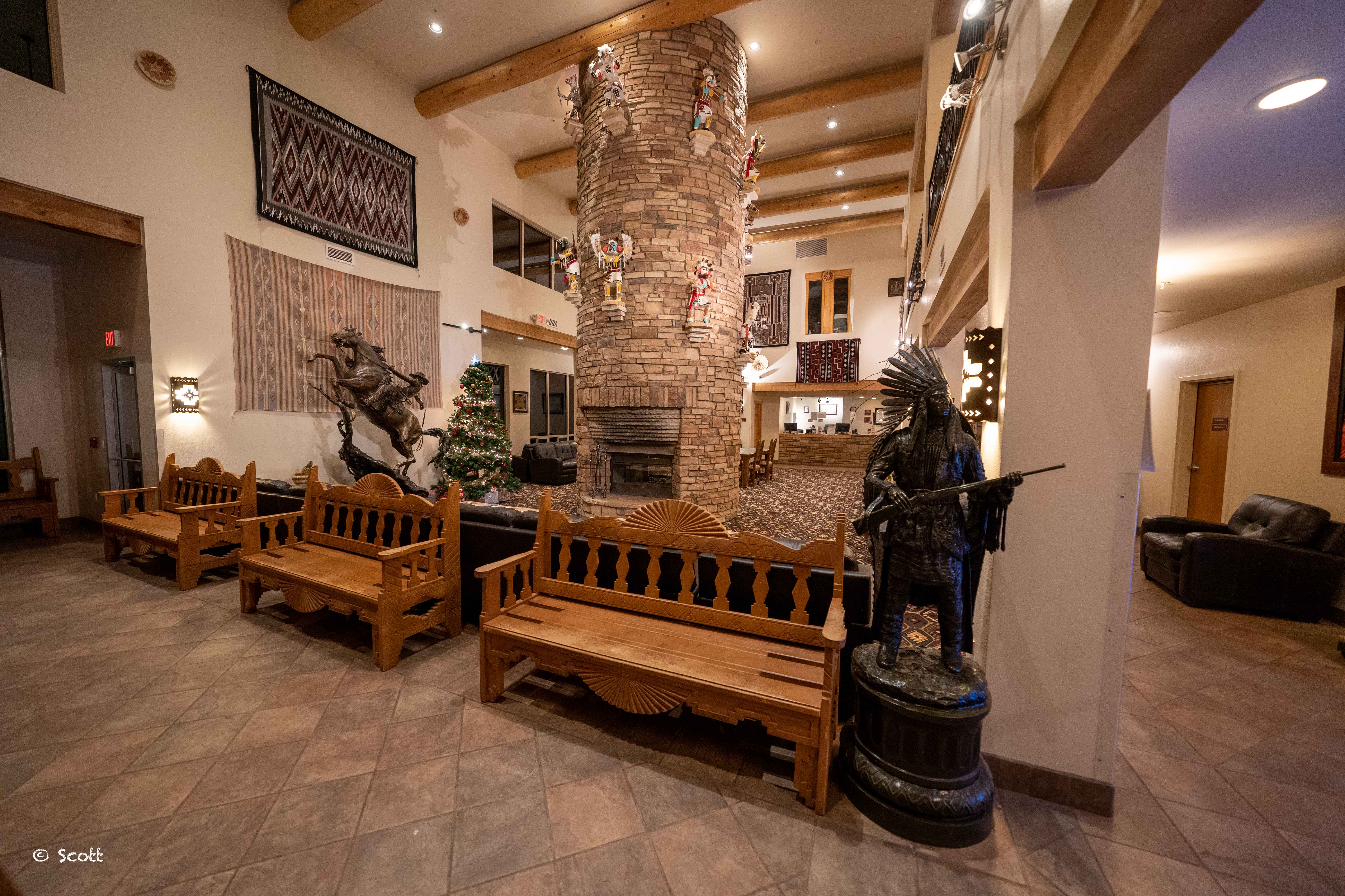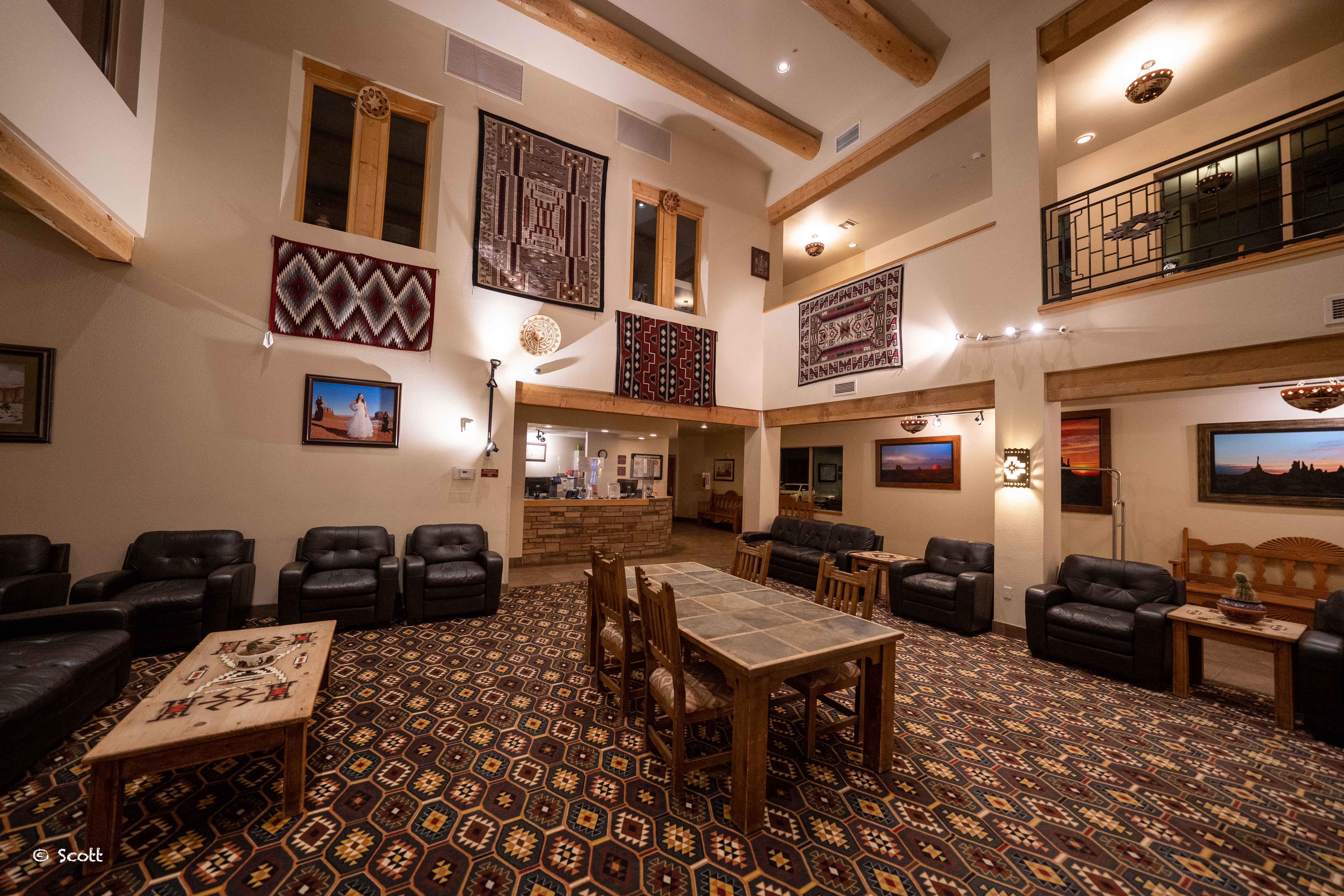 大堂里放着印第安人演奏的轻音乐,飘着淡淡的木柴味,看看展出的各种工艺品,难免让人唏嘘印第安人的遭遇。Monument Valley纪念碑谷的全称叫Oljato-Monument Valley,感觉好多印第安名字都像日语拼写