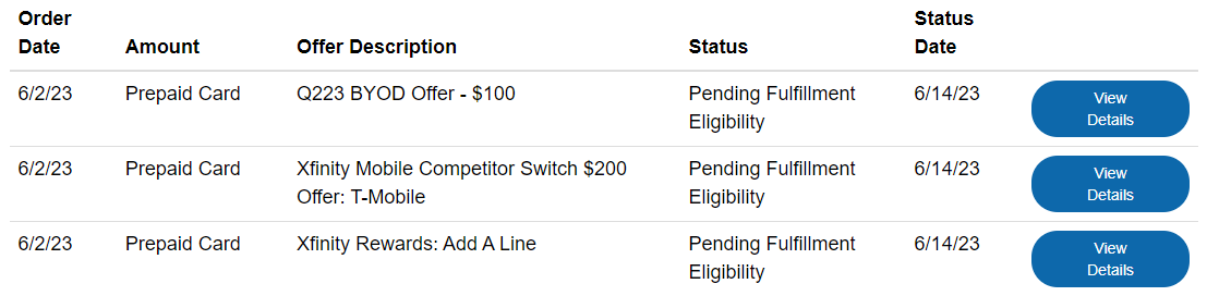 搞不清楚它家这个 Tracker 到底是这么 Track 的,我开了5条线,如果按每条线的号码查,每条线都显示 Pending Fulfillment Eligibility,但是如果用 Xfinity 的账号查,就只显示一条 Pending Fulfillment Eligibility 记录,还不知道是指的哪条线。
