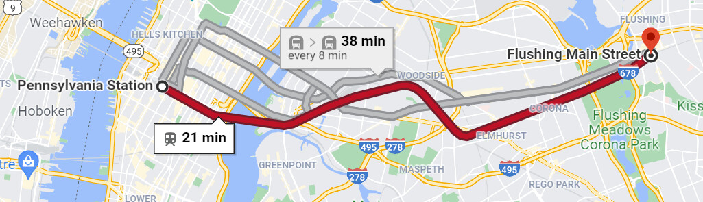 midtown去flushing坐地铁基本上就是要坐整个7号线 时代广场前一站就是起点站hudson yards了 flushing是终点站