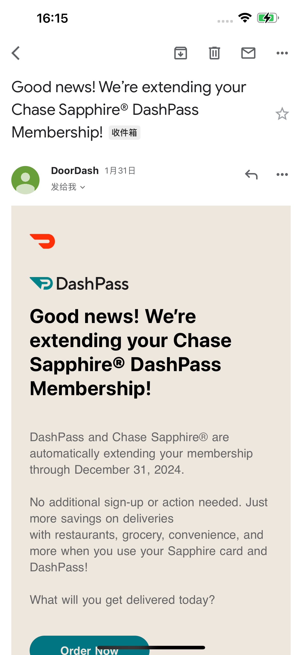 chase freedom 也有給免費3個月dash pass 有卡可以試試