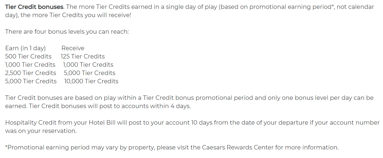 凯撒经常会给tier credit promotions/ bonuses. 日常的有Caesars Rewards - Earning Tier Credits,