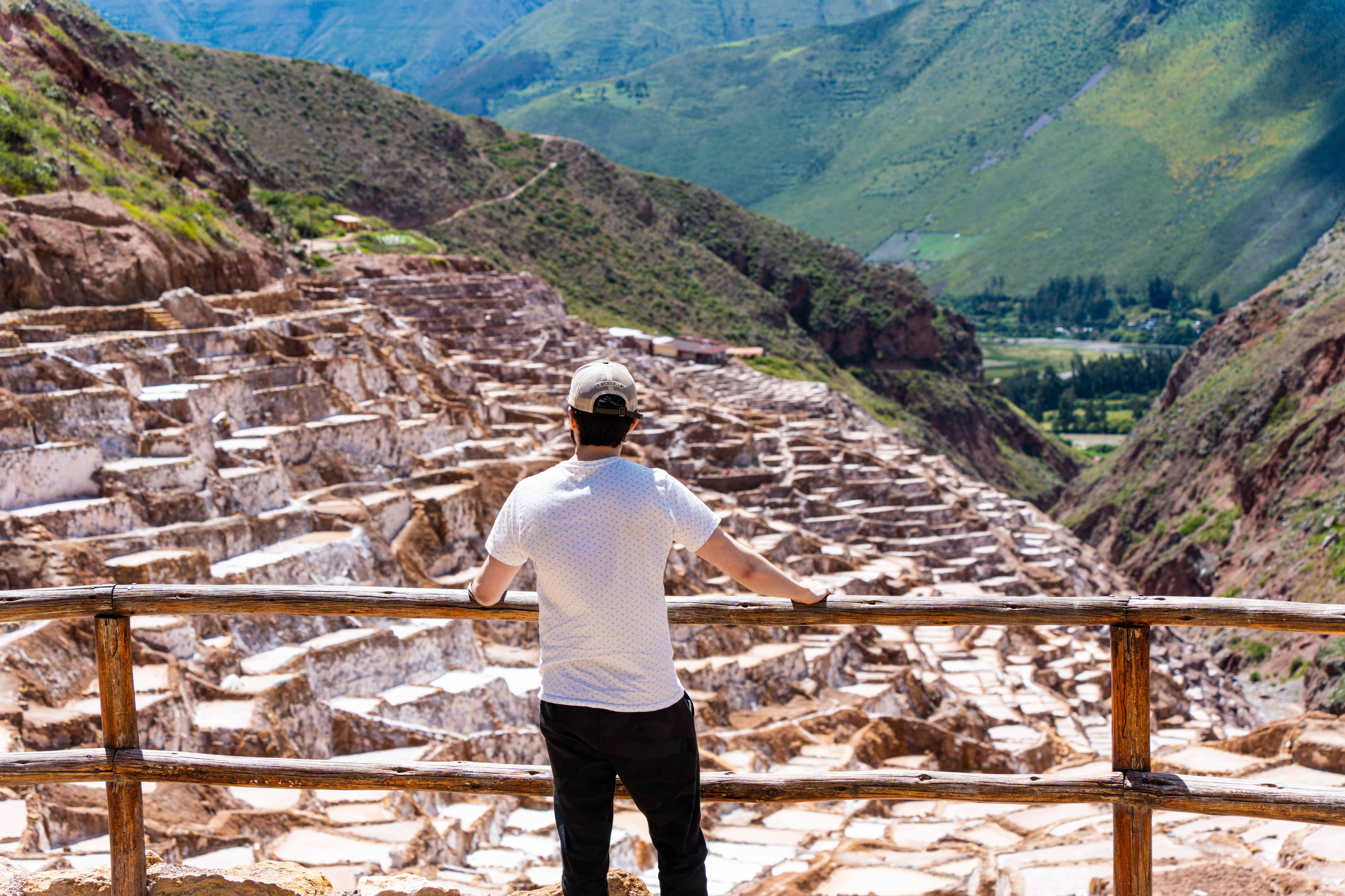 需要承认,平时生活在佛州低海拔地区的人来走印加古道,自己背着全部行李高海拔爬上爬下确实有一定危险,跟着向导,有人帮着背些东西却有帮助。(下图是圣谷的盐田)