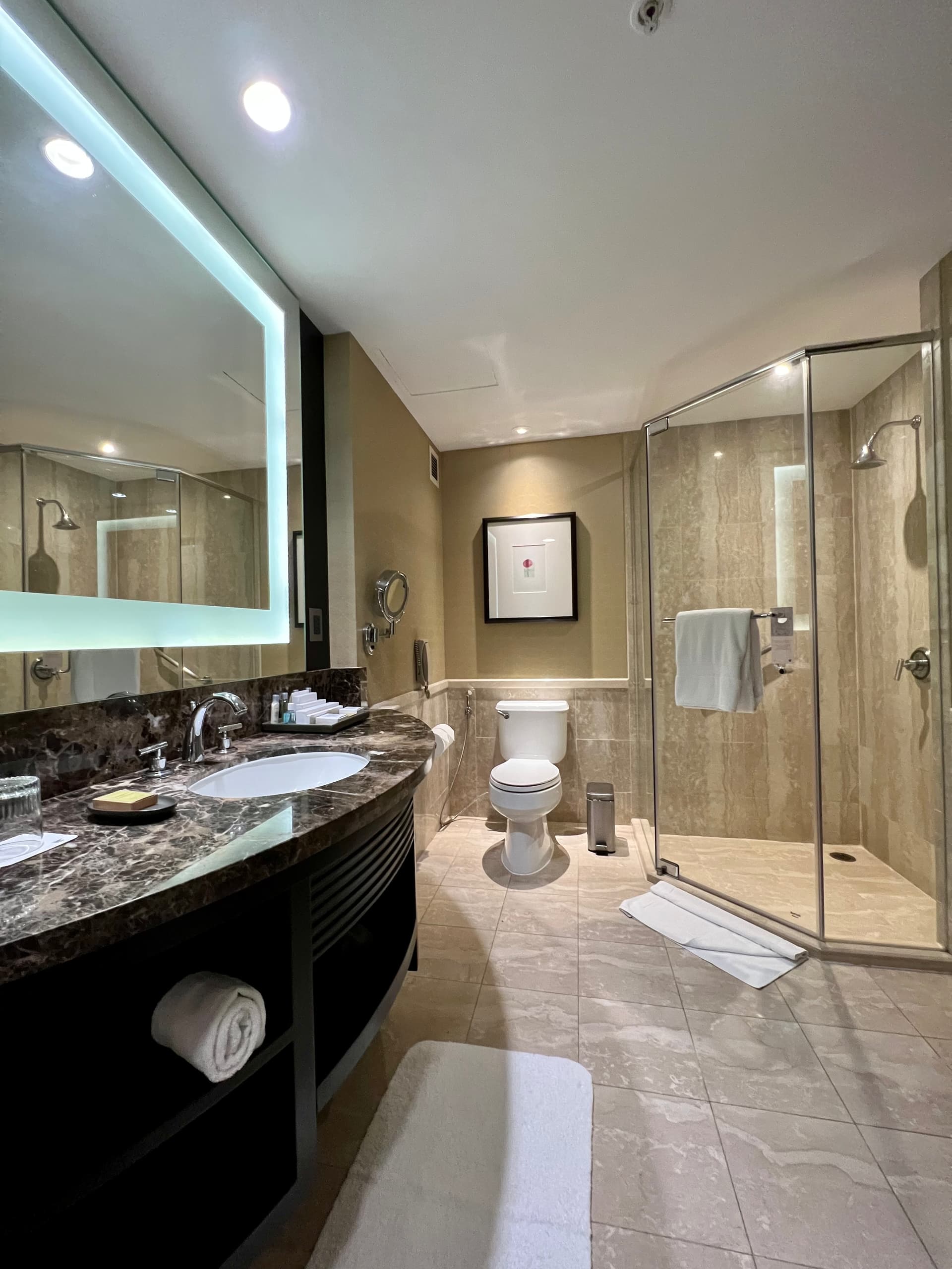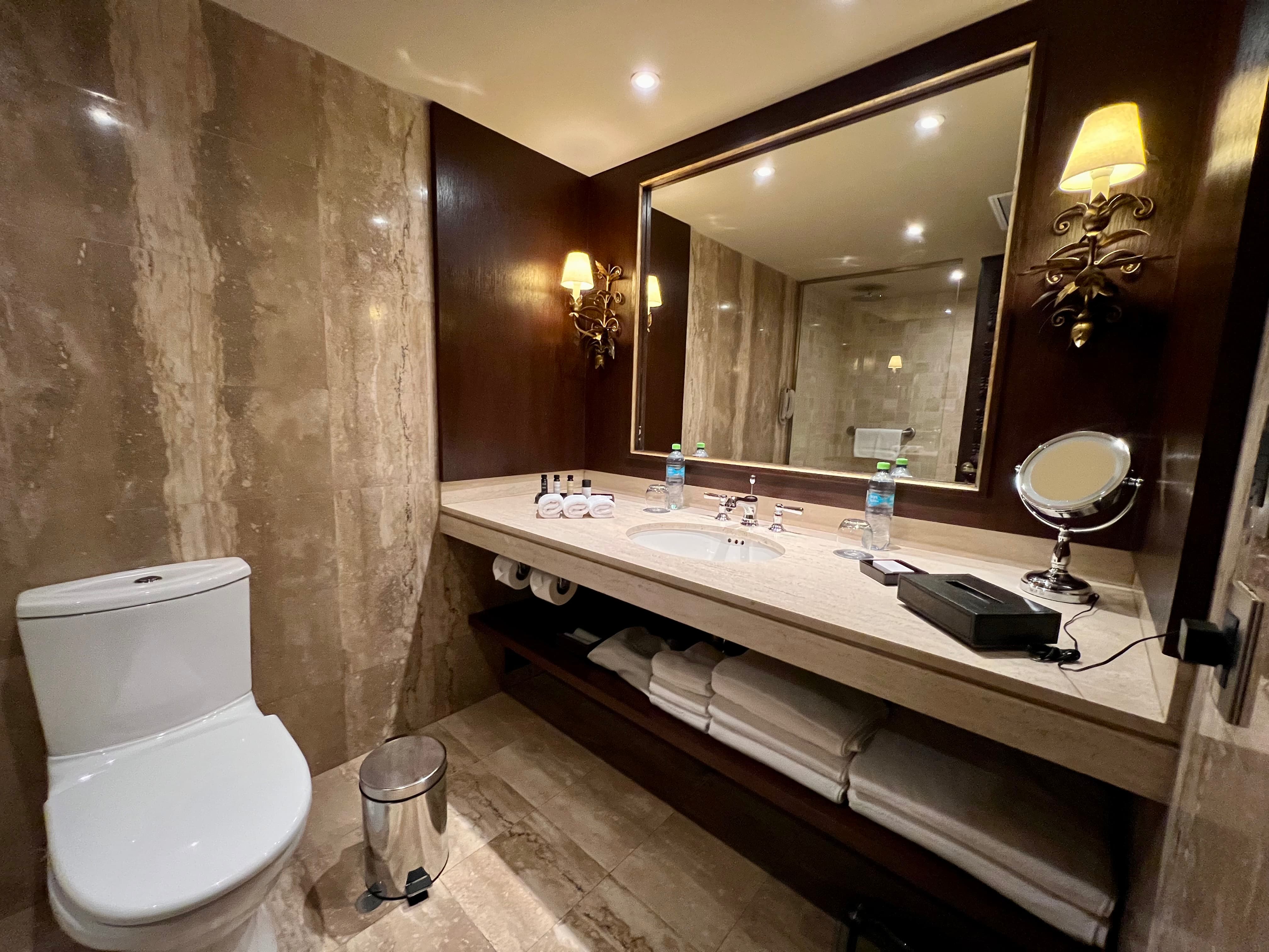 洗手间非常大,干湿分离。备品还是奇葩的希尔顿常备 crabtree。。。不知道这家店和上面的JW Marriott,以及城中的某家希尔顿是不是一个业主 ![]()
