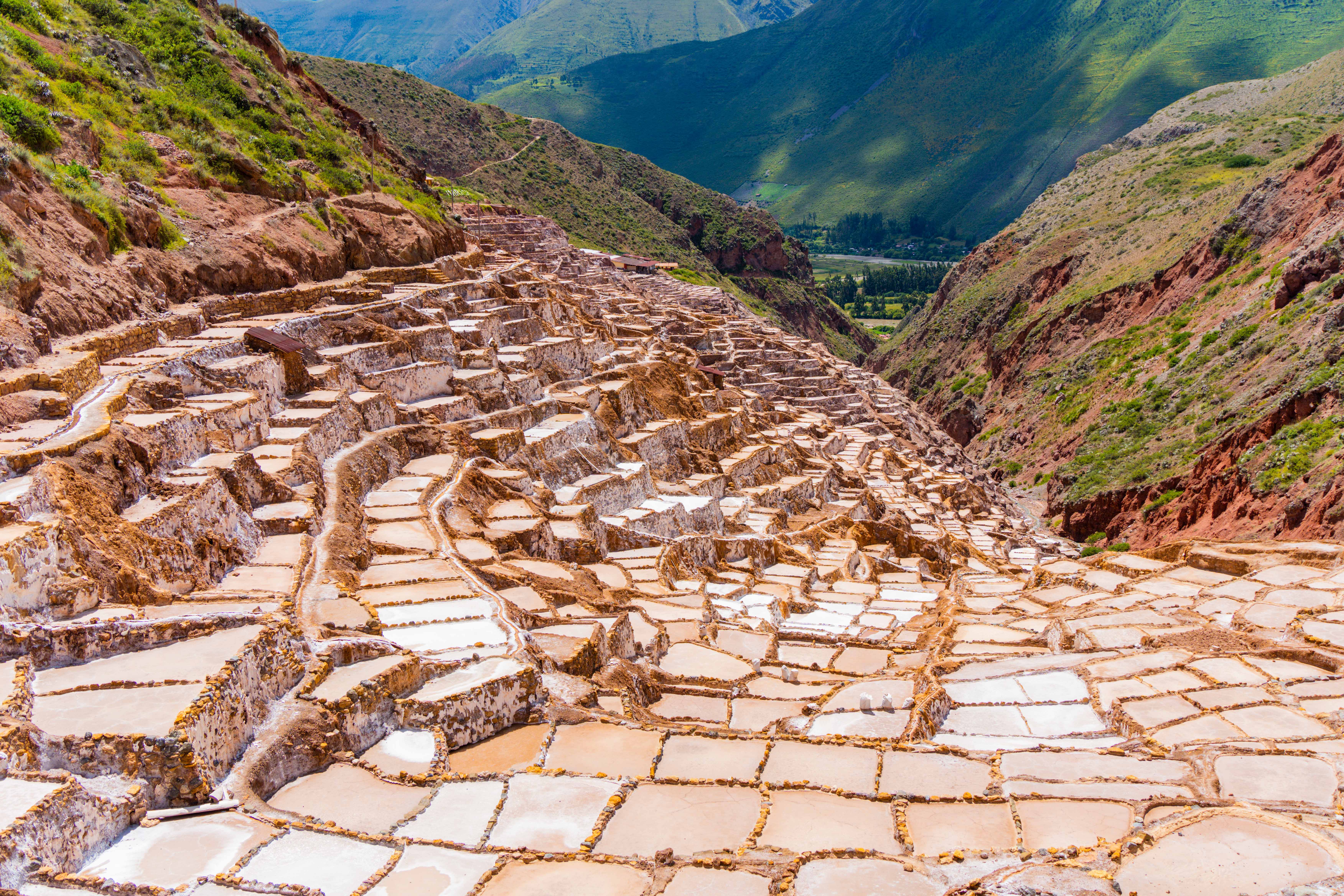 除去乘火车、走印加古道,还有多条线路都可以走进来,这包括Short Inca Trail(当年运送给养的线路)。说实话,印加古道主打的是人文历史,景色一般,花4-5天沿Salkantay Trek进入马丘比丘是景色非常壮观的一条线路,每年8、9月是 Salkantay Trek 的最佳时机。(上图是秘鲁最大的盐田,在Urubamba 附近)