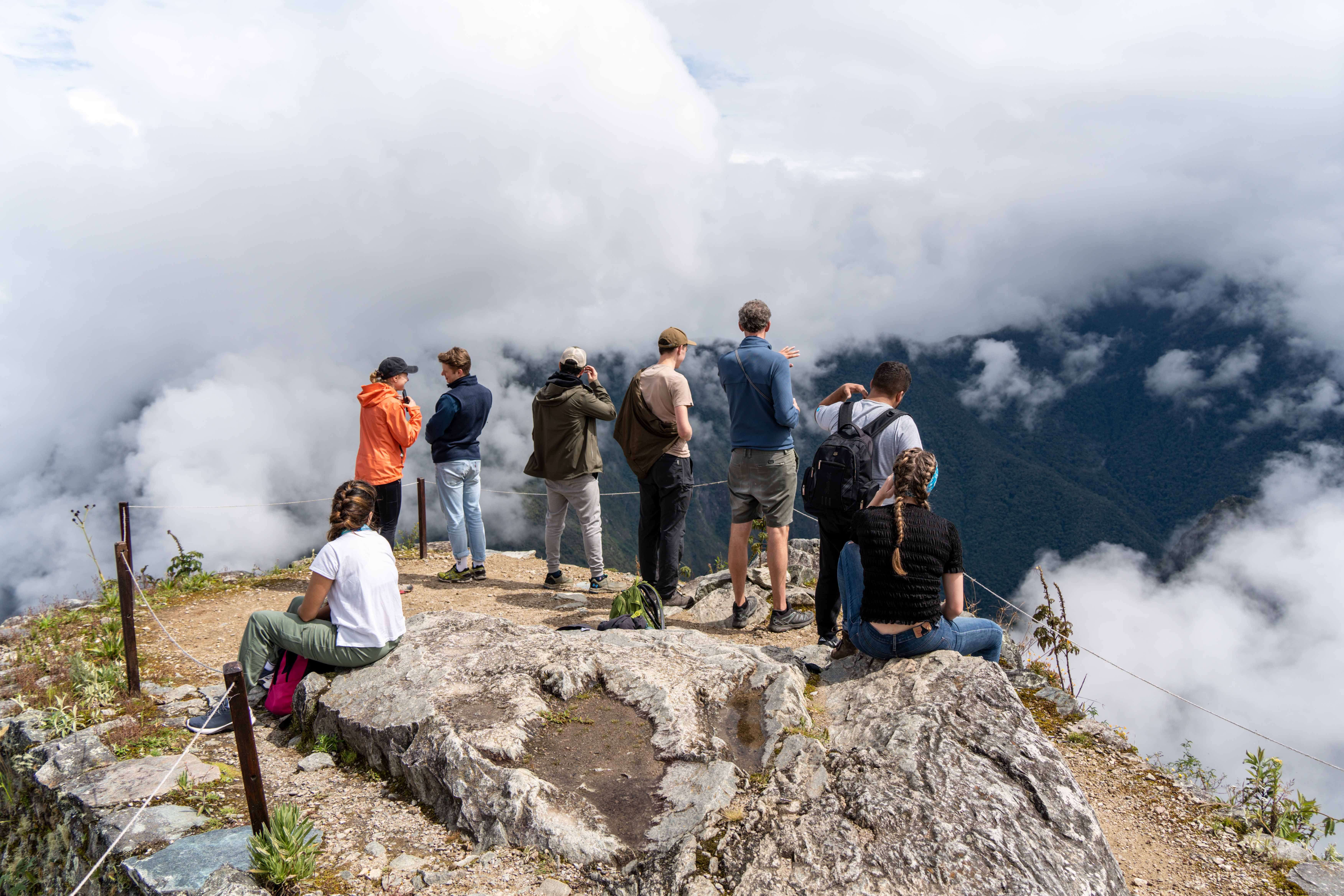 为了爬马丘比丘山,我们特别在马丘比丘正门口的 Belmond 住了一晚。我们一早7点开始爬,夯吃夯吃爬到山顶但云雾缭绕,在山顶等了一小时都不见马丘比丘城墟上的积云散去,这成了旅程中为数不多的遗憾。(上图是我们几个人在山顶等云雾散去,大家望眼欲穿,甚至想把山顶上最年轻的人献祭