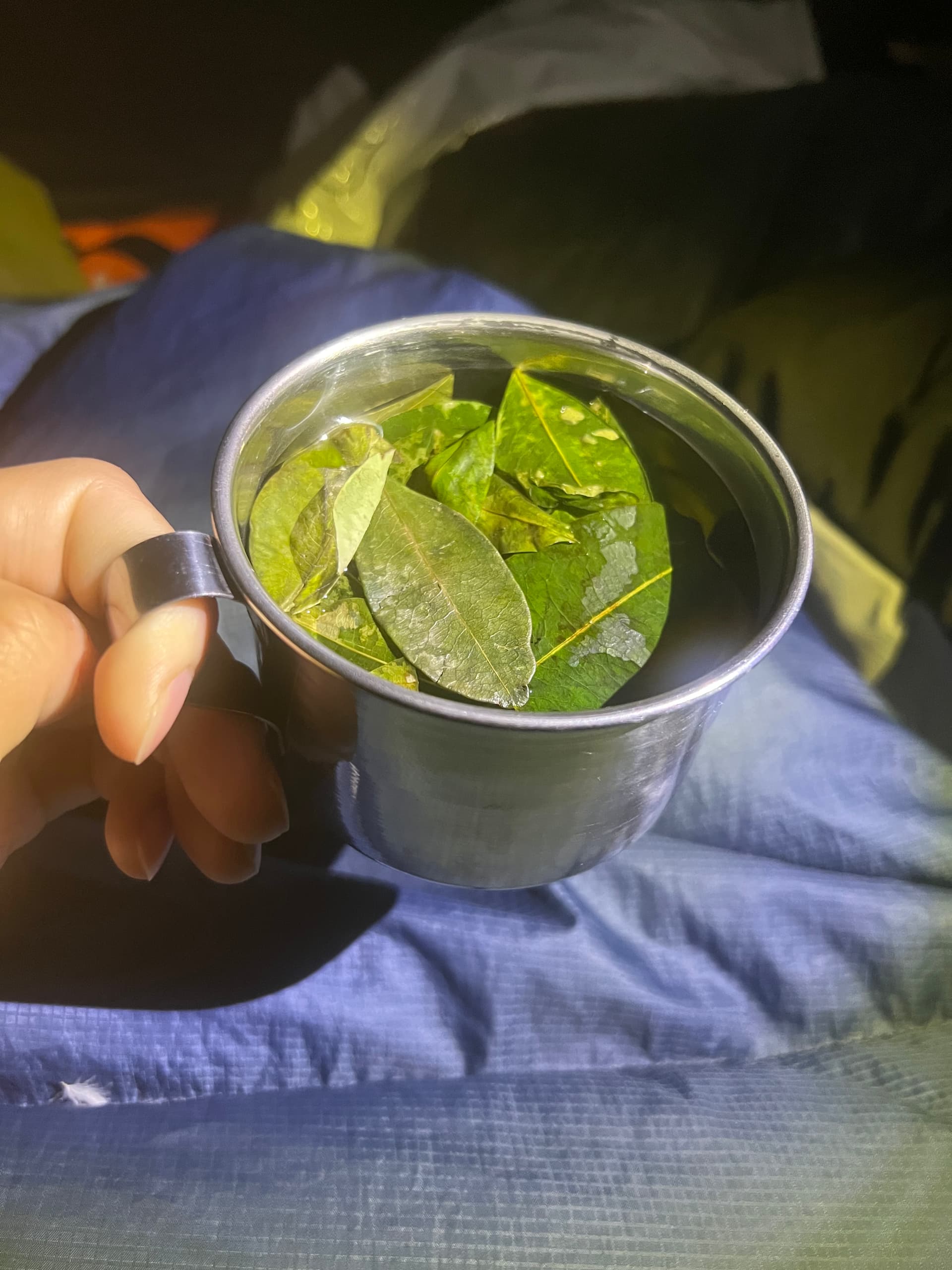 )。我们每顿饭都喝古柯茶,爬山也偶尔含几片在嘴里,每天早上天不亮,就会有个印加厨师端着两杯热腾腾的古柯茶到我们帐篷旁边叫我们起来high ![]()