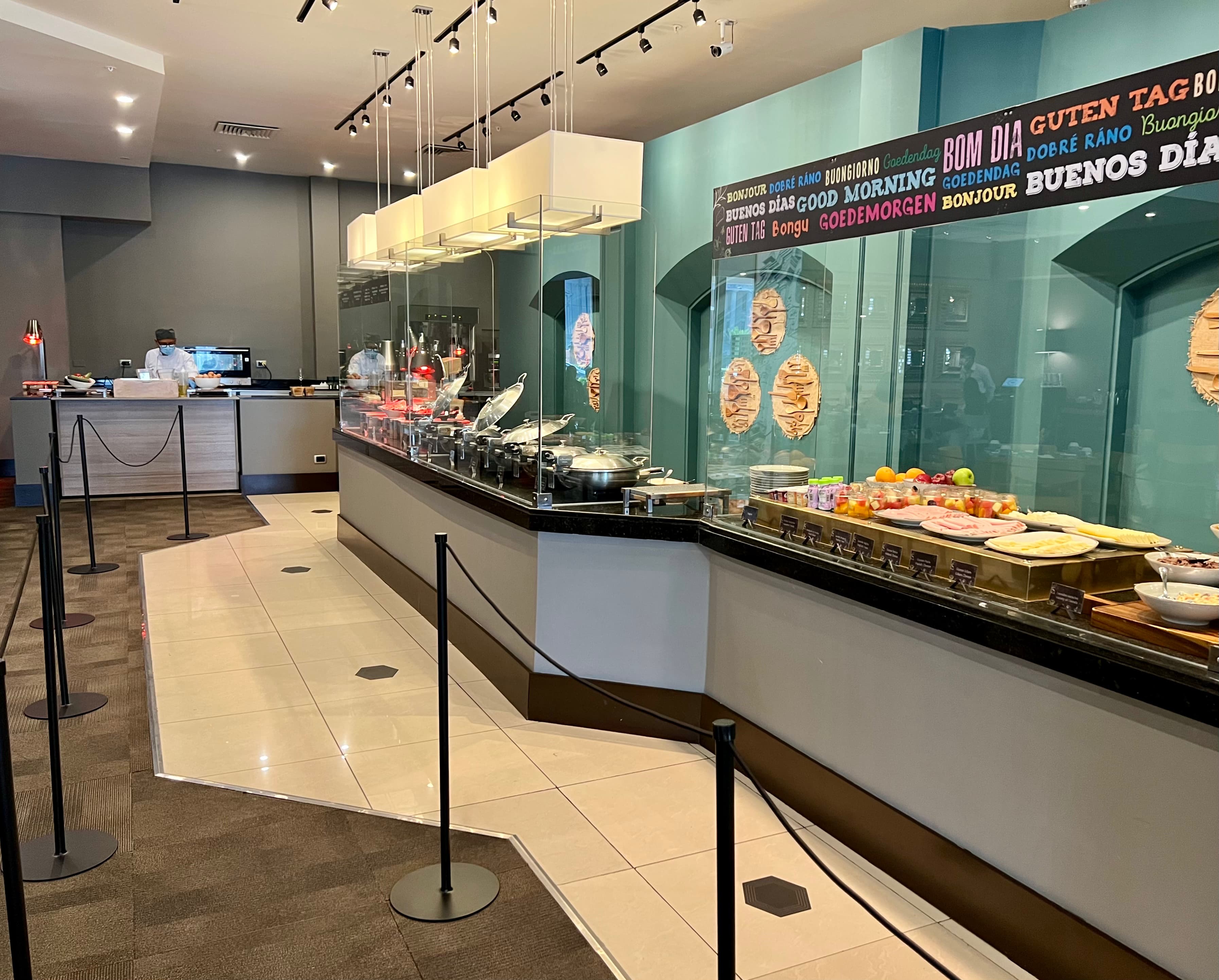 这家酒店防疫做的不错,虽说是个非常大的会议中心,自助早餐全都是由防护屏里面的工作人员给夹,有种国内机关食堂/学校食堂打饭的感觉 ![]()