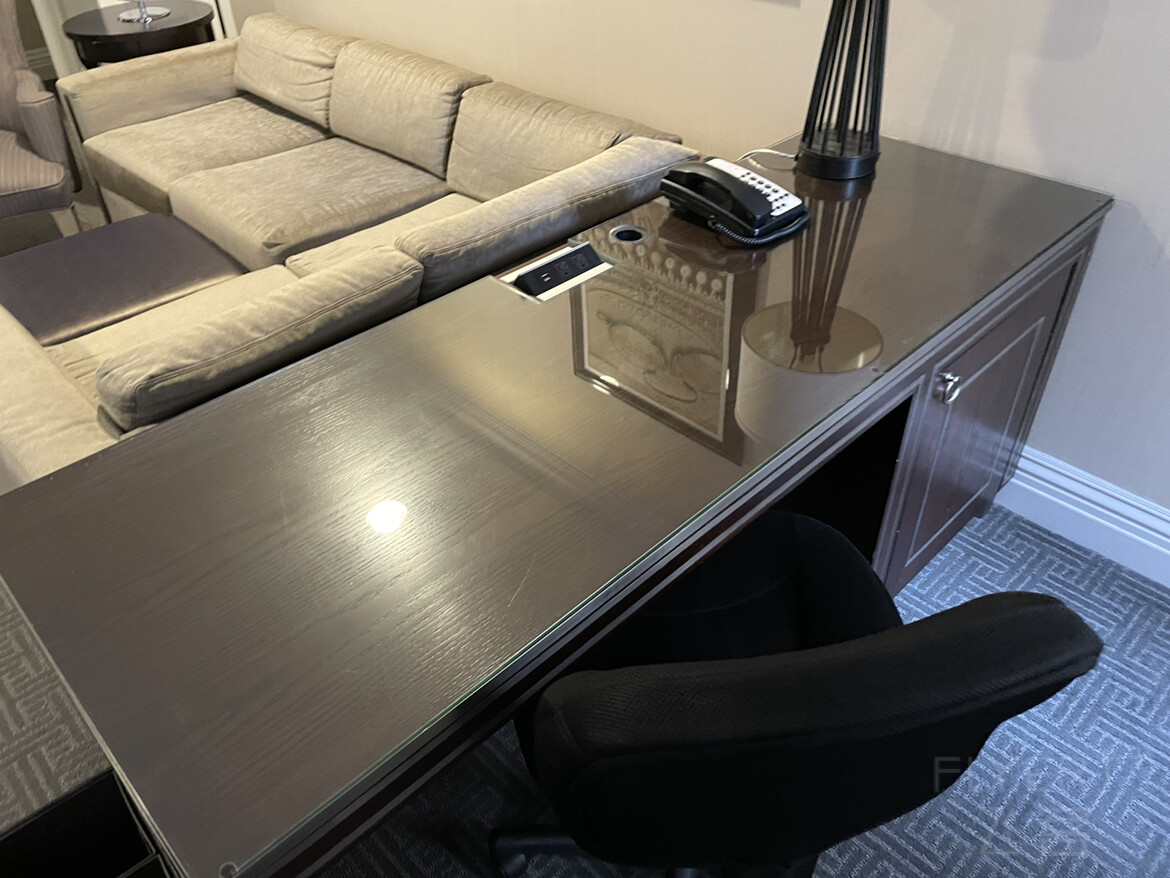 提前就邮件酒店想问能不能升套,没想到酒店很爽快答应了,收到邮件就直接帮我改了,还帮我match了价格(定的预付价不能改后来降价了)套房一共64间,能给一下升4天还是不容易的,在此感谢!套房比较大,客厅的电视也很大,就是房间稍微有点昏暗,灯都是白色的比较冷,其他都挺好的。