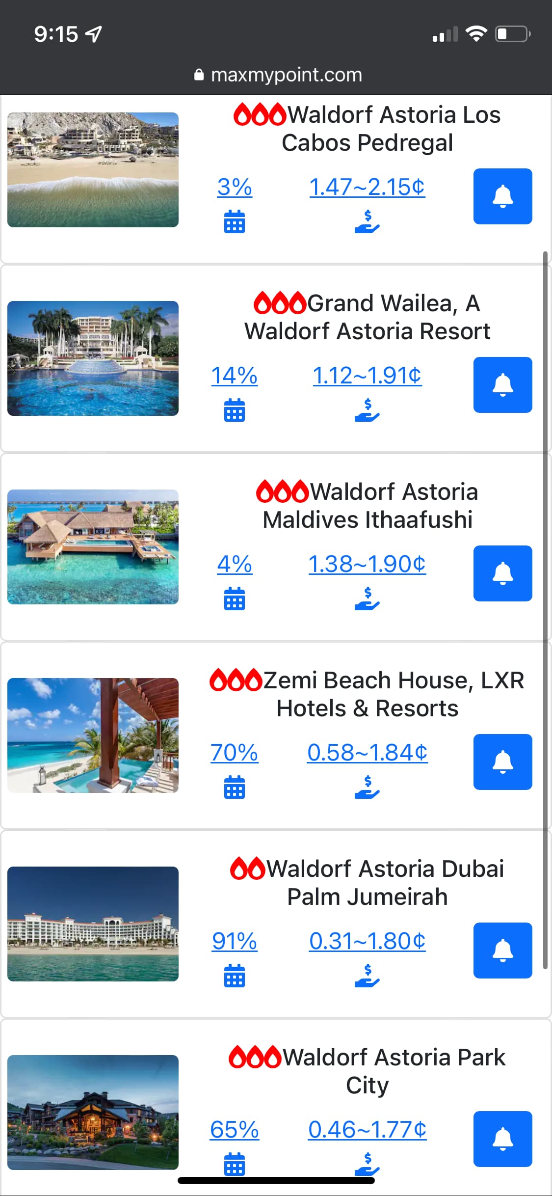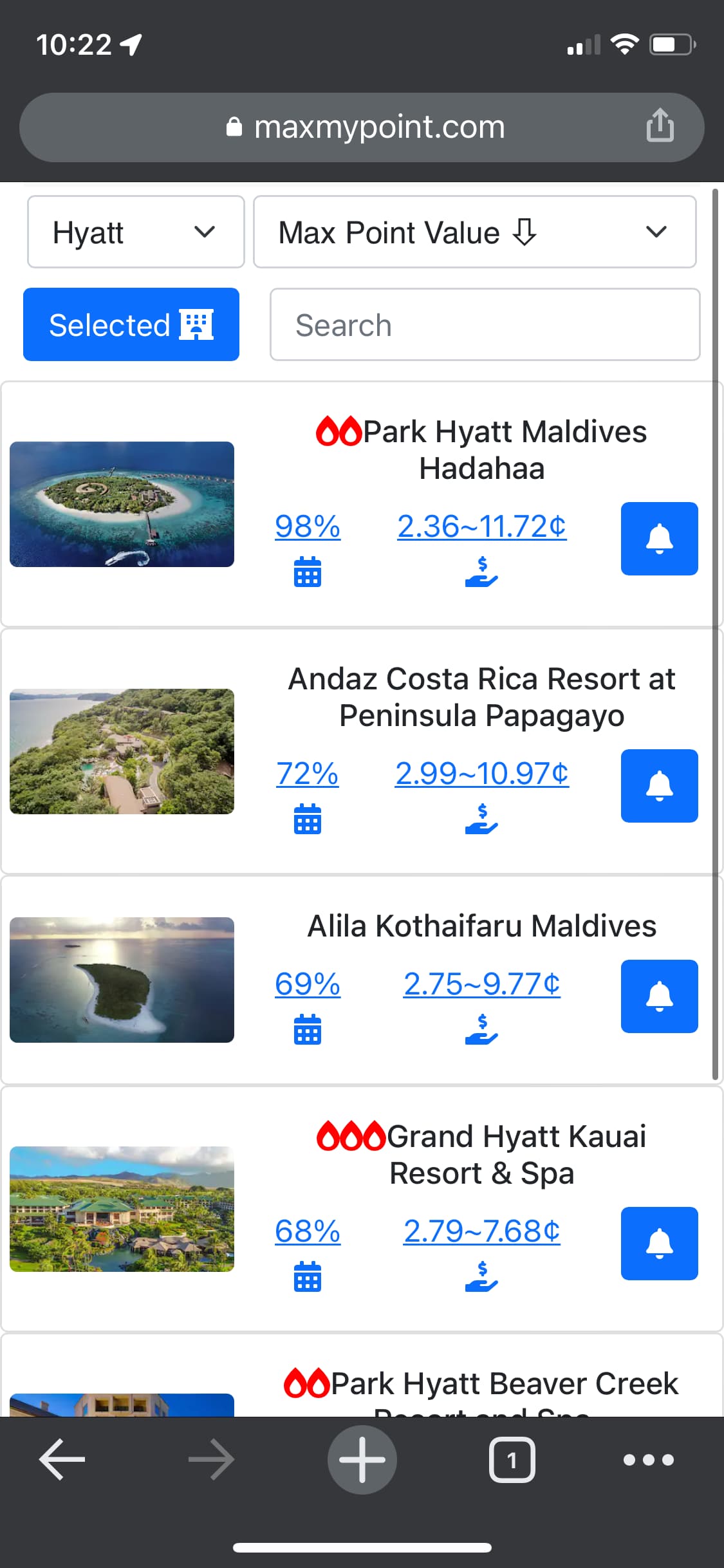 MaxMyPoint现已支持Hyatt积分价值的每日刷新,最高价值可以达到惊人的11cents per point…