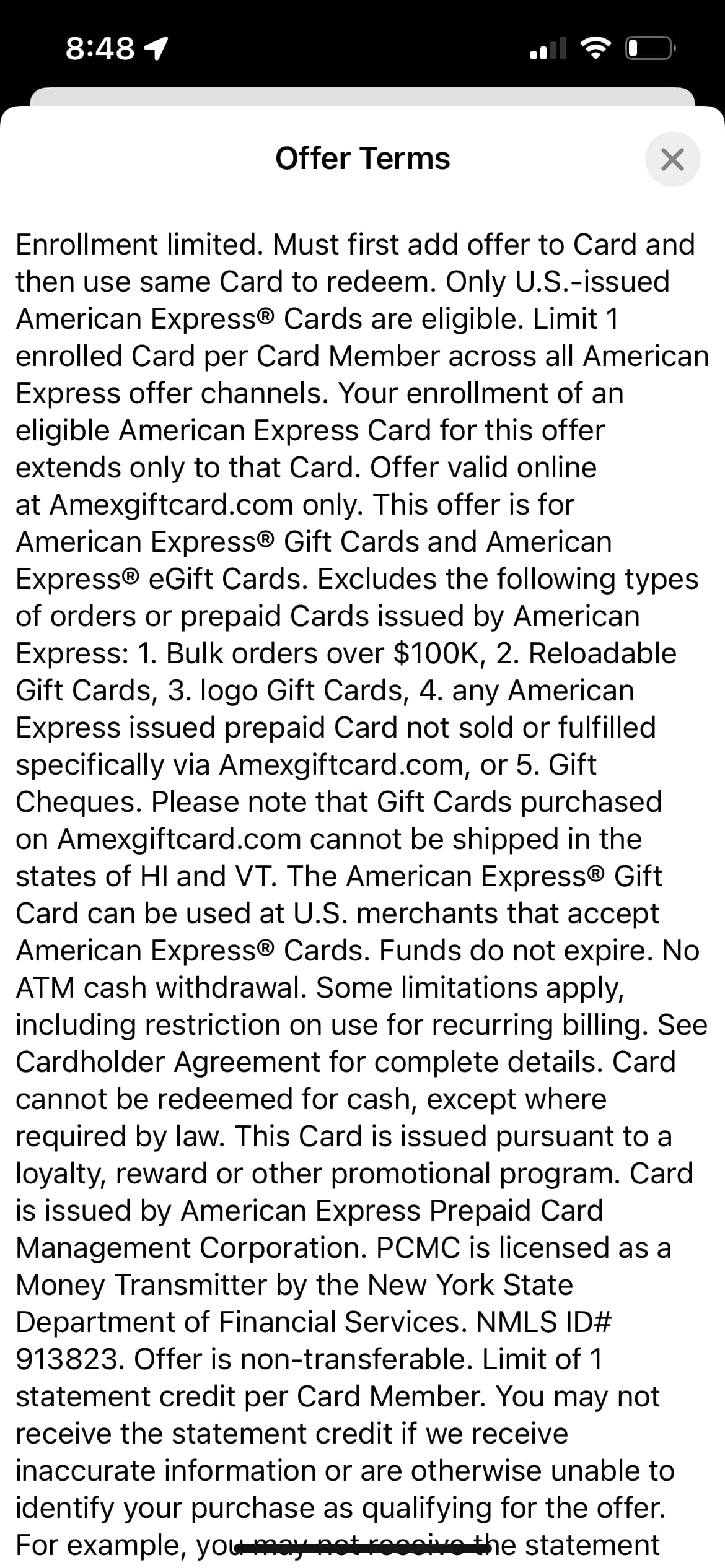 我一直以为这个offer可以买amex gc,差点就被坑了