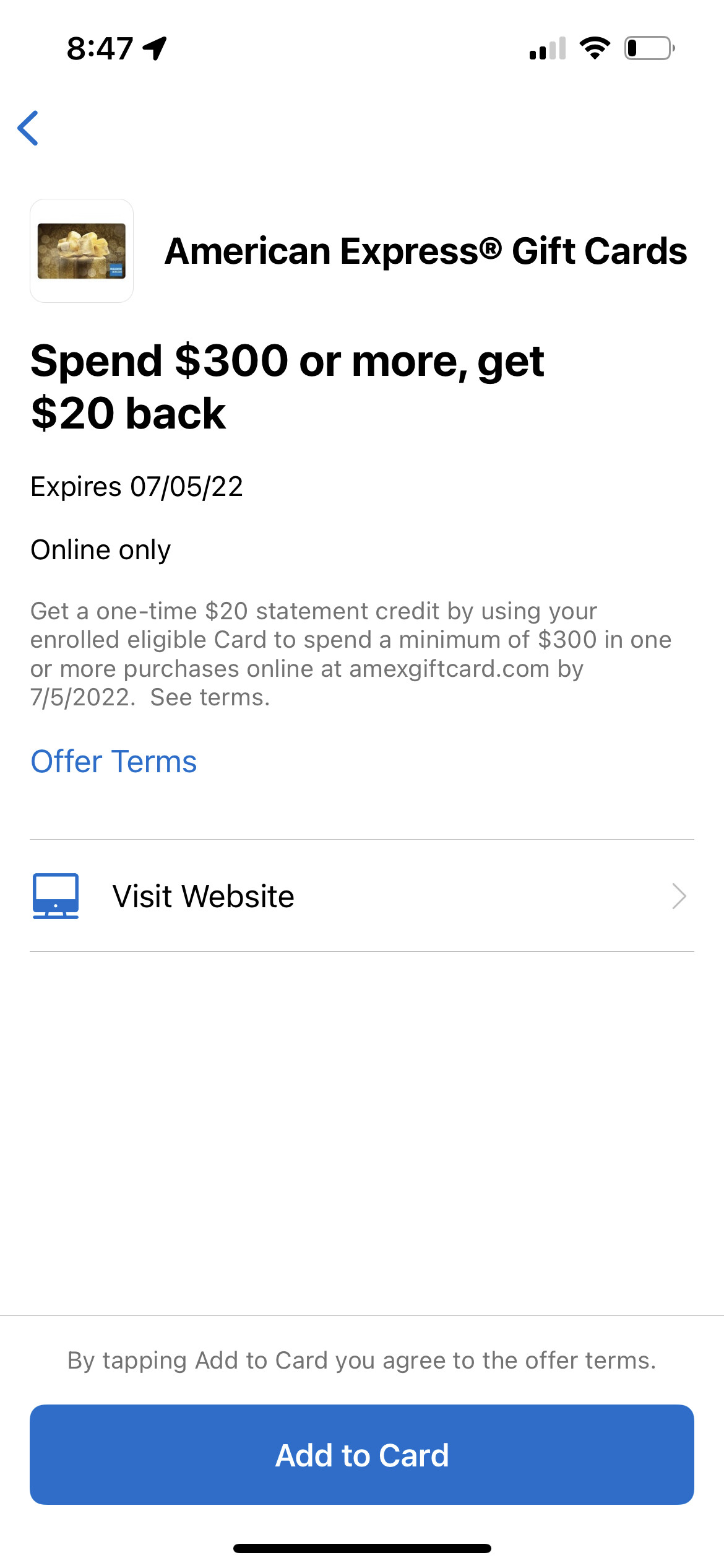 “ Offer valid online at Amexgiftcard.com only. This offer is for American Express® Gift Cards and American Express® eGift Cards.”