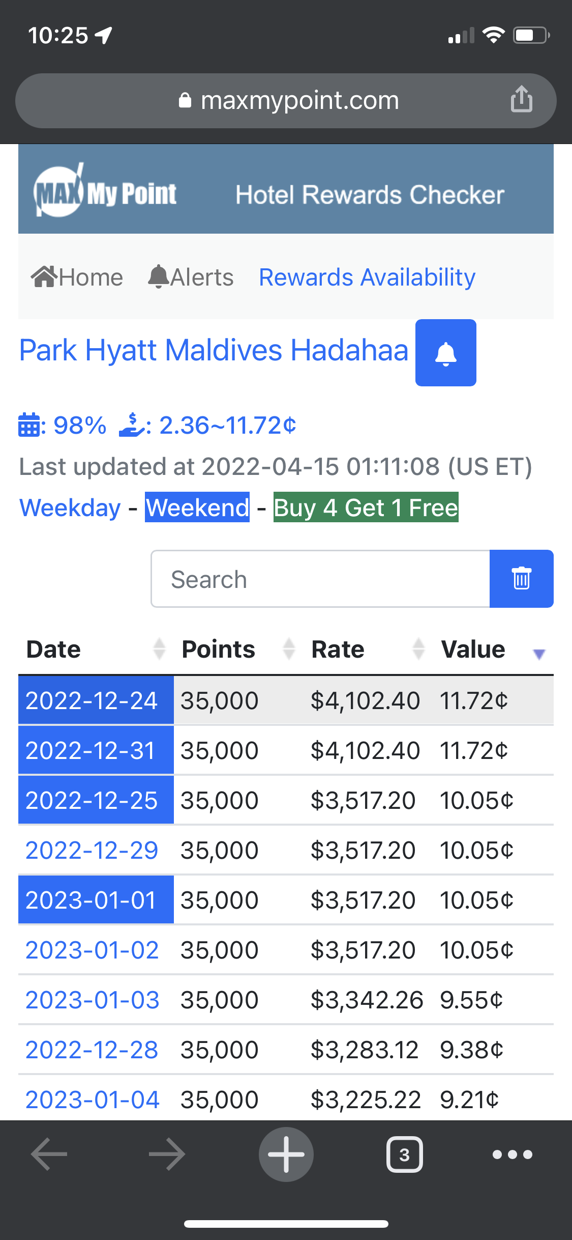 很多Max Point Value排很高的酒店旺季availability很差或者淡季point value下限很低,能不能推出一个Median Point Value的排序?个人觉得会更适用一些