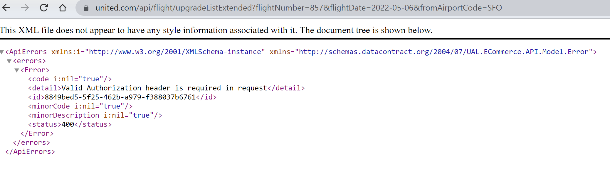 找了个这个https://www.united.com/api/flight/upgradeListExtended?flightNumber=857&flightDate=2022-04-30&fromAirportCode=SFO. 报错:“detail”: “Valid Accept-Language header is required in request”,