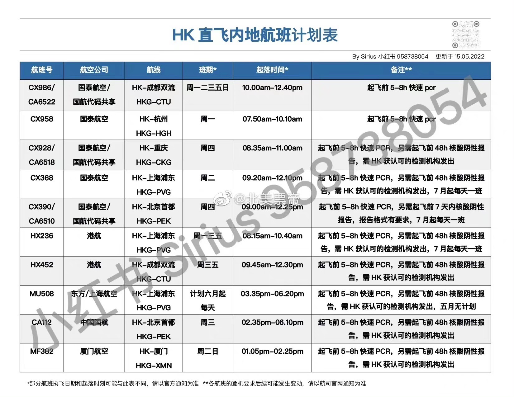 - 核酸要在最后一程飞往香港航班预计起飞时间前48小时采样