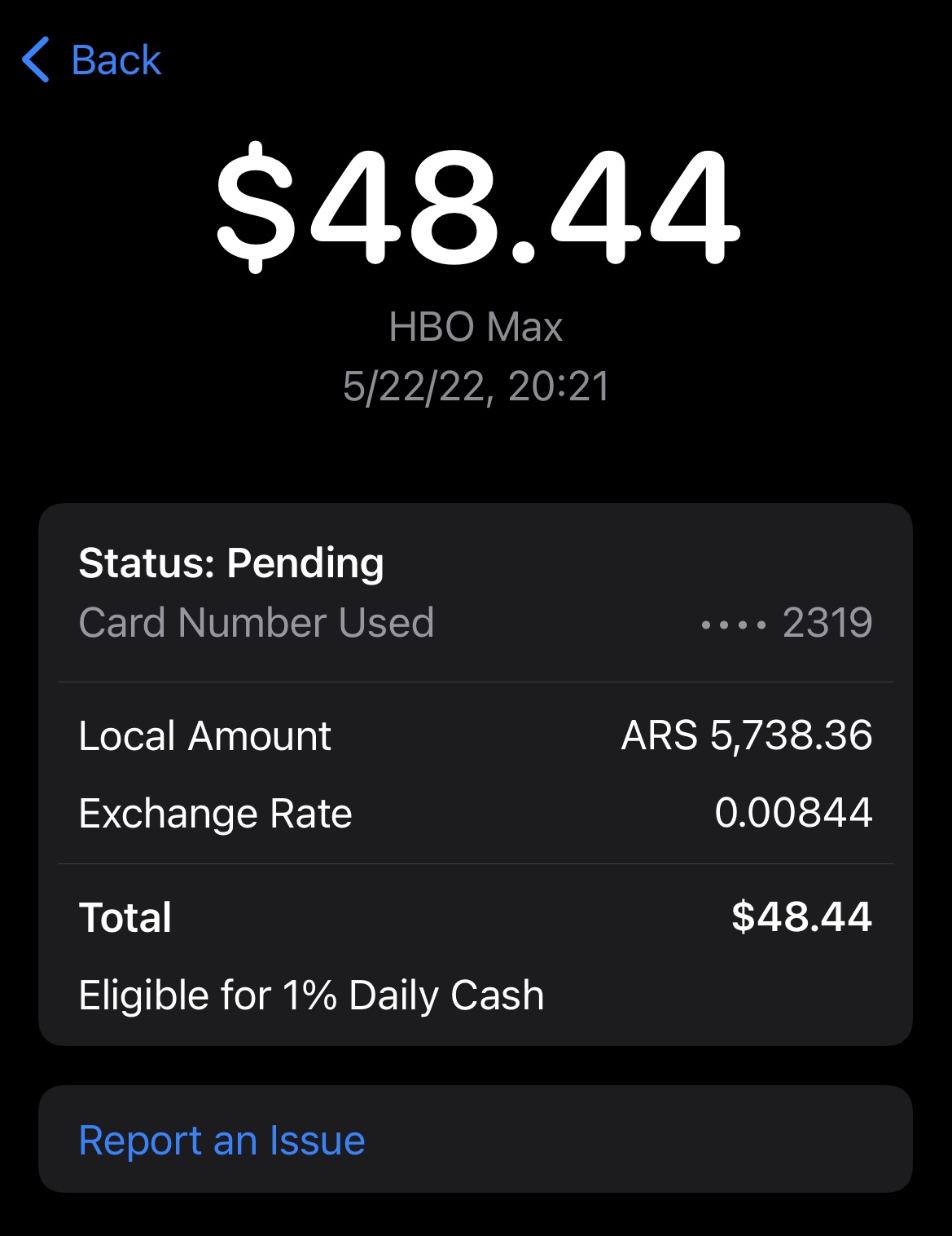 最后因为懒,用了 Apple Card 支付包年。一年 ARS 3499,实收 ARS 5738.36、约合美元 $48.44。多出来的 64% 的费用我不确定是什么,是税么?
