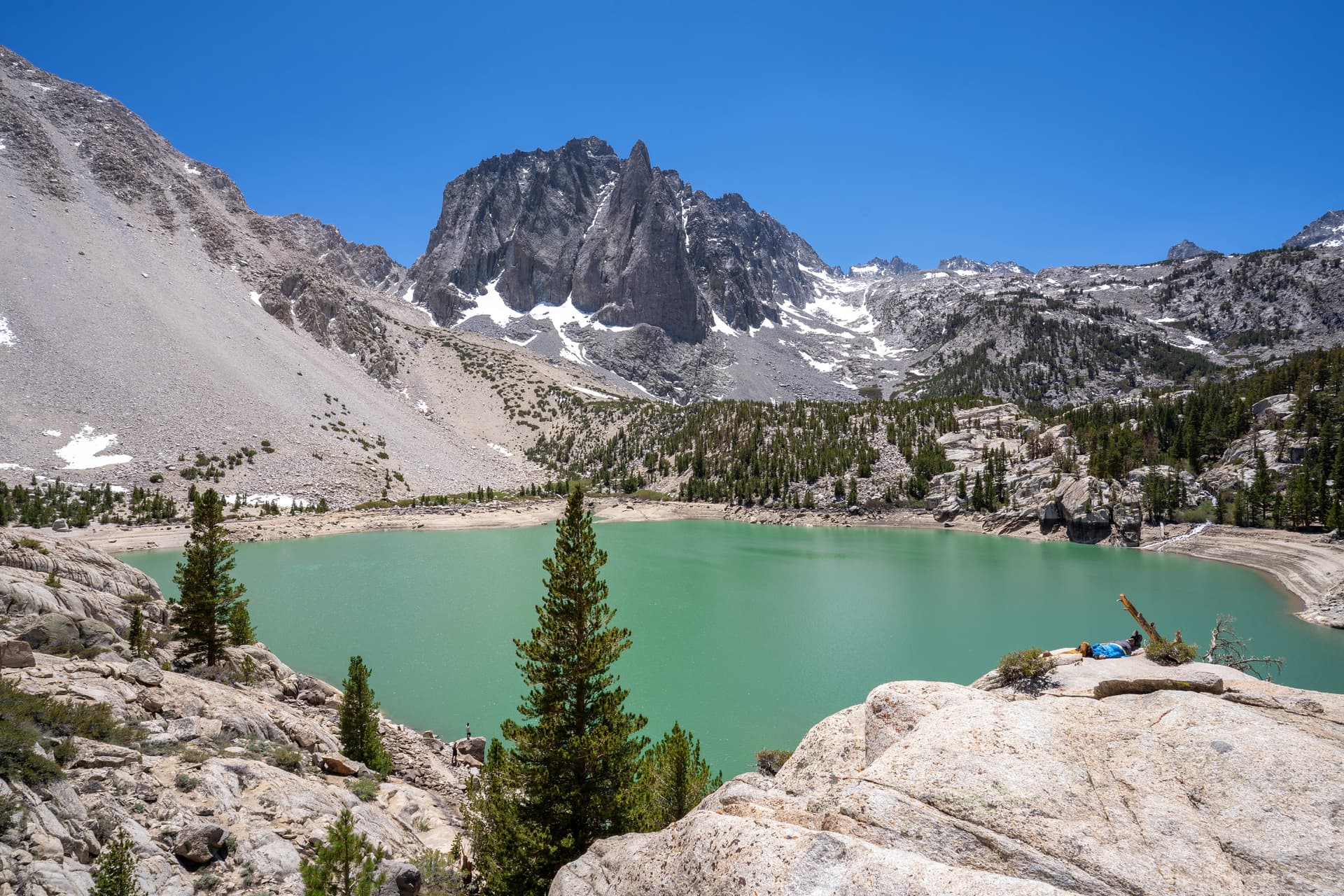 我们是周五晚上在trailhead的Big Pine Creek Campground露营的,两车六人,我们头车8点多天黑才到的,路上在Lone Pine看了很美的日落,后车半夜12点多才到。说好的大晴天呢!!!周五夜里就下雨了。。。。。还好周六早上7点多雨停了,我们8点多营地出发,8:22am在trailhead拍了合照,3:25pm在trailhead拍了返程合照。3个人到了第3个湖,3个人只去了第2个湖。跟你一样,湖的背后都是阴天哈哈哈哈哈哈!!!但是其他方向都是蓝天白云的多云天。不过比你运气好一点,我们的湖还是很亮很蓝绿的。