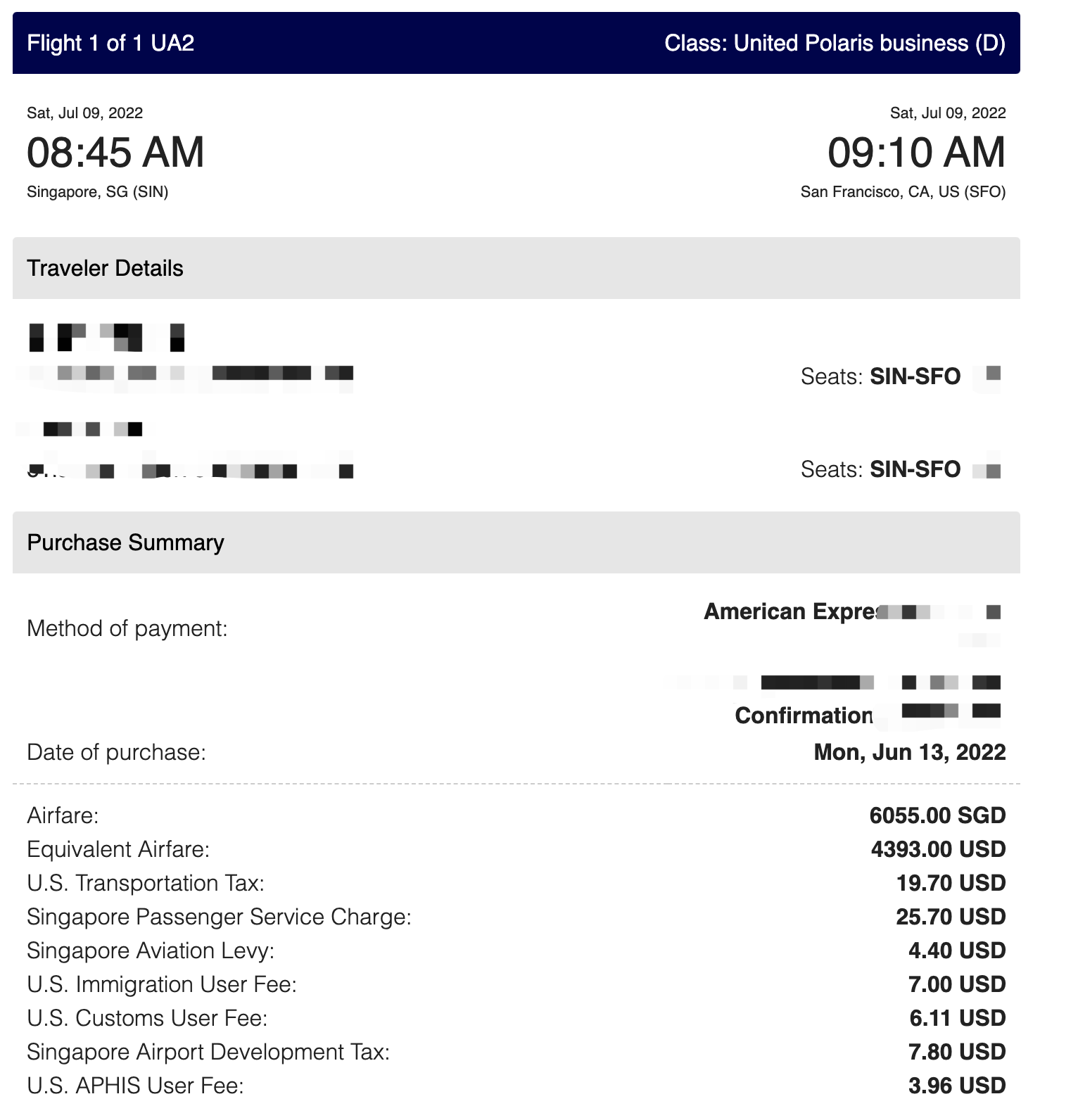 SQ 7000$ 左右,UA,JAL,ANA 都是 4500$ 左右