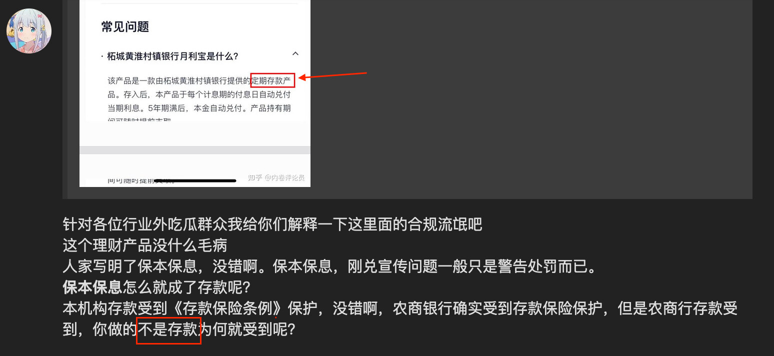 截图中很明显是理财产品,从名字就可以看出来。因为存款是存款,并没有什么”财富自由“之类的别名。而投诉内容为: