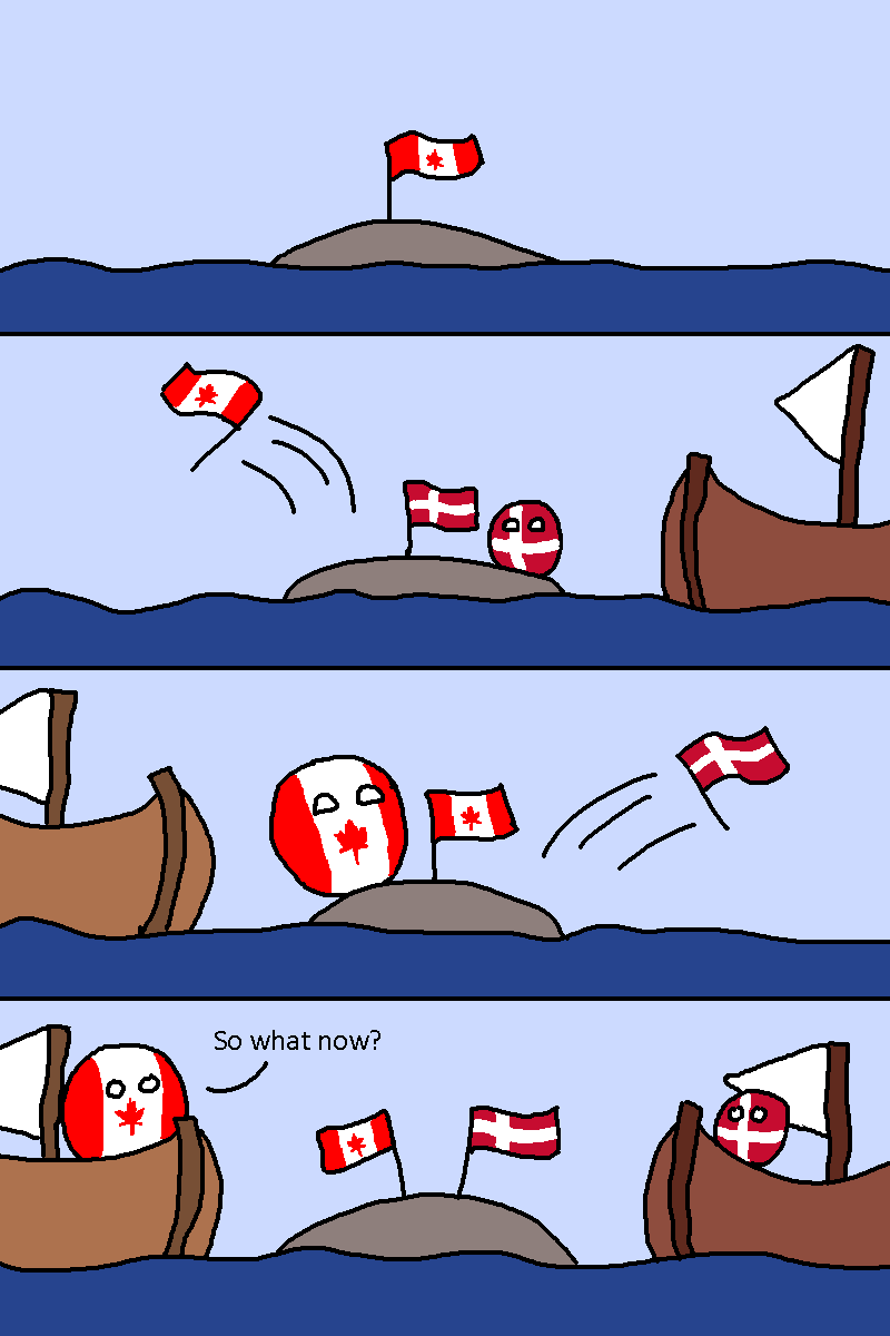 在遥远的加拿大北边有这样一座神奇的小岛Hans Island,在肯尼迪海峡中间,只有几平方公里,与加拿大和格陵兰岛距离只有几公里。历史上最早记载,这座小岛由因纽特人居住,但由于丹麦在全世界的远征带来的影响,国际法庭在1933年将这块地判给了丹麦。由于这里实在太过偏僻,近代史上无人居住,加拿大和丹麦于是开始了政治斗争:每隔一段时间一个国家的军队会上岛进行科学实验,顺便把对方之前树立的国旗扔掉换成自己的,再带一瓶威士忌