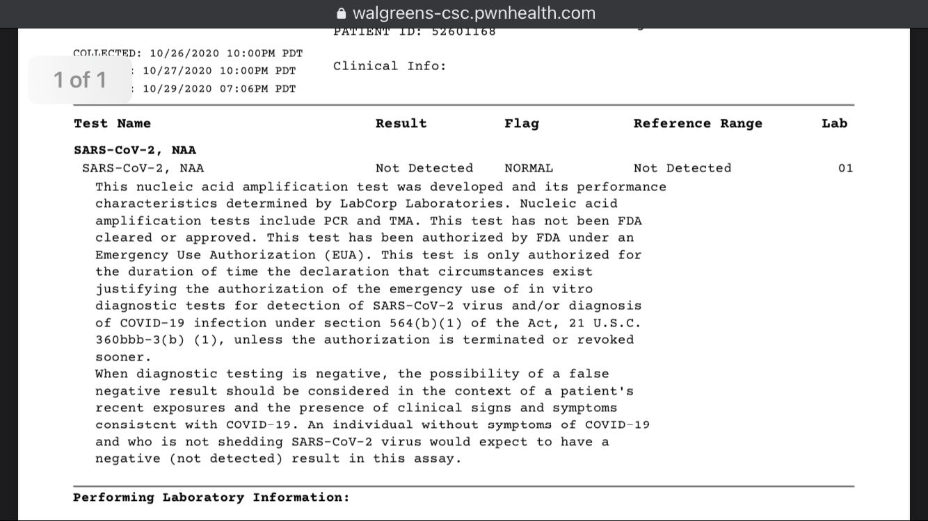 坐标加州Rancho的walgreens,实测DAY 1检测,DAY 2晚上就出结果了。但是个人觉得walgreens的检测没有CVS测的过程放心,大大咧咧的,但是结果报告时没问题的