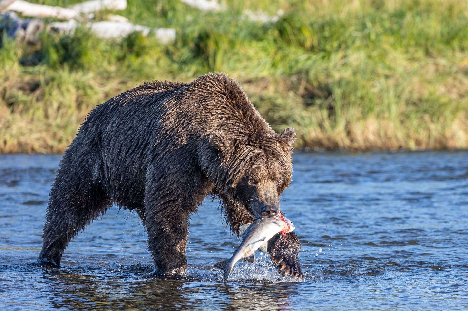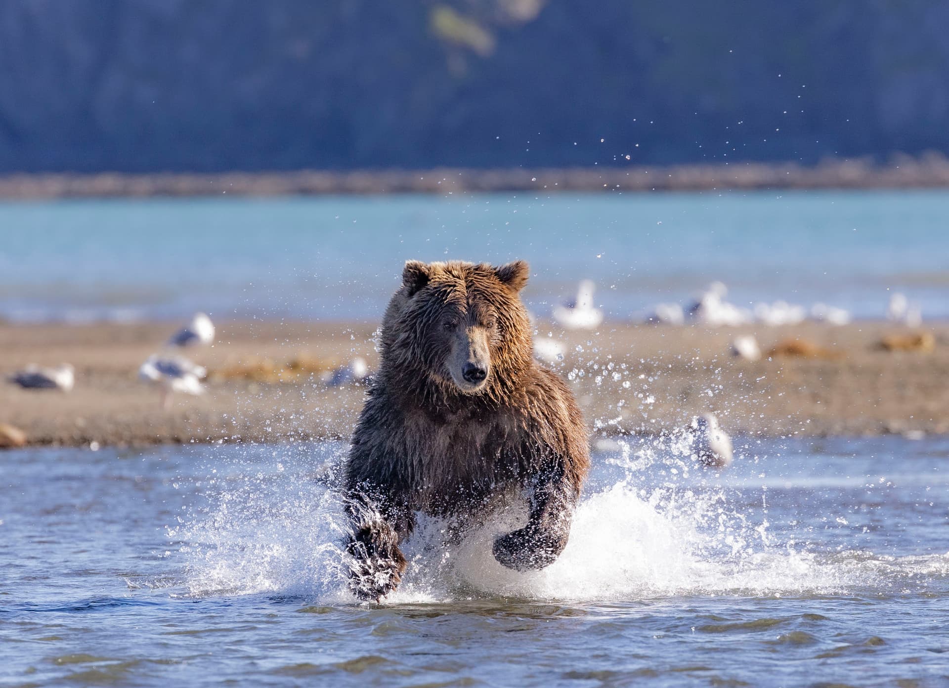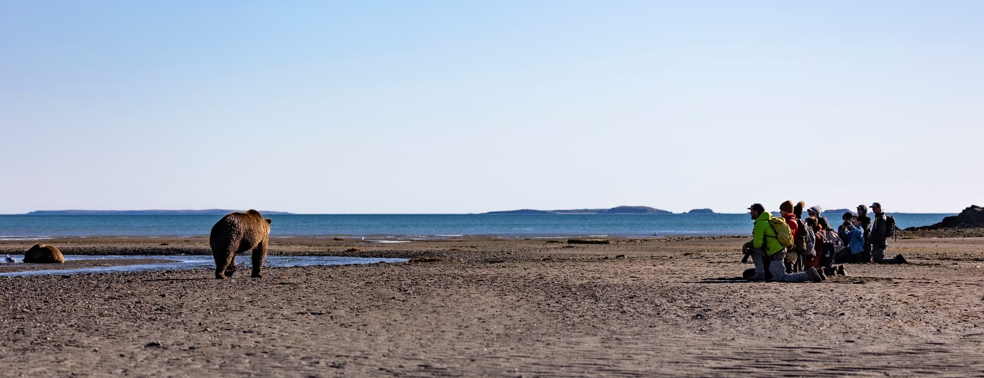 这个是从Homer报的团,一个小飞机5个人。特色是这个飞机直接降落在海滩上,然后棕熊们就在河流的入海口那抓鱼吃,因为鱼太多了,所以它们也懒得搭理人。可以离的很近