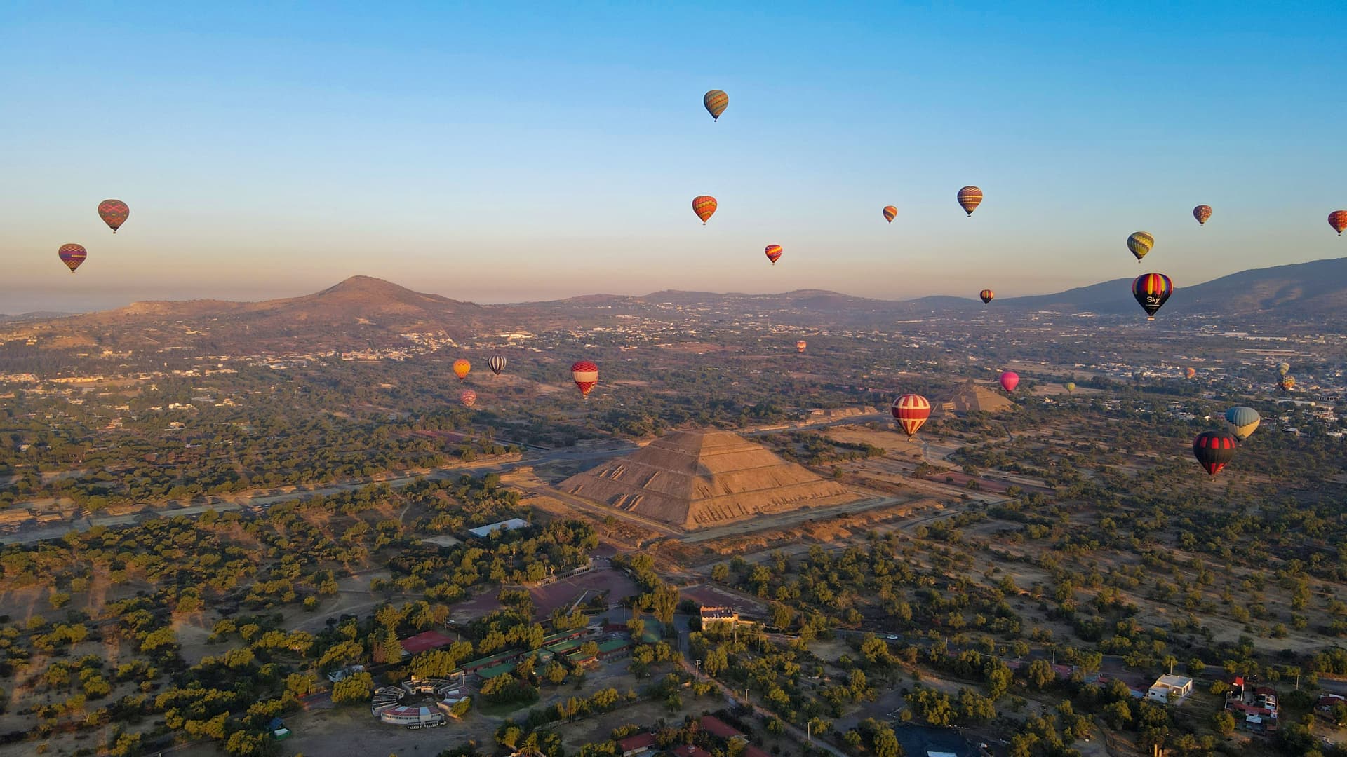 特奥蒂瓦坎金字塔算是比较热门景点了,就在墨西哥城边上。我一开始是中午到的,就见人来人往的,停车场里也好多游客的大巴。也是后来赶路的时候再次路过这里,我才发现原来早上是有热气球的。不过我个人建议还是少坐,这东西不可控,风险高,掉下去基本上人就没了。我当年在土耳其卡帕多西亚坐了一次就觉得不太安全,后来发现那地方时不时的会出事儿,隔几年就有个新闻曝出来。
