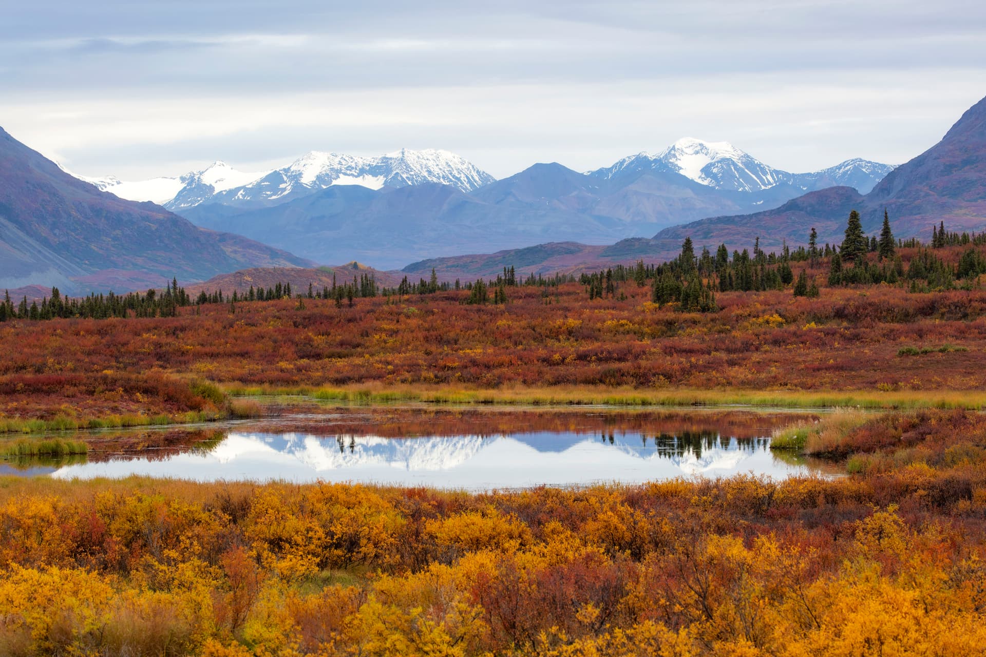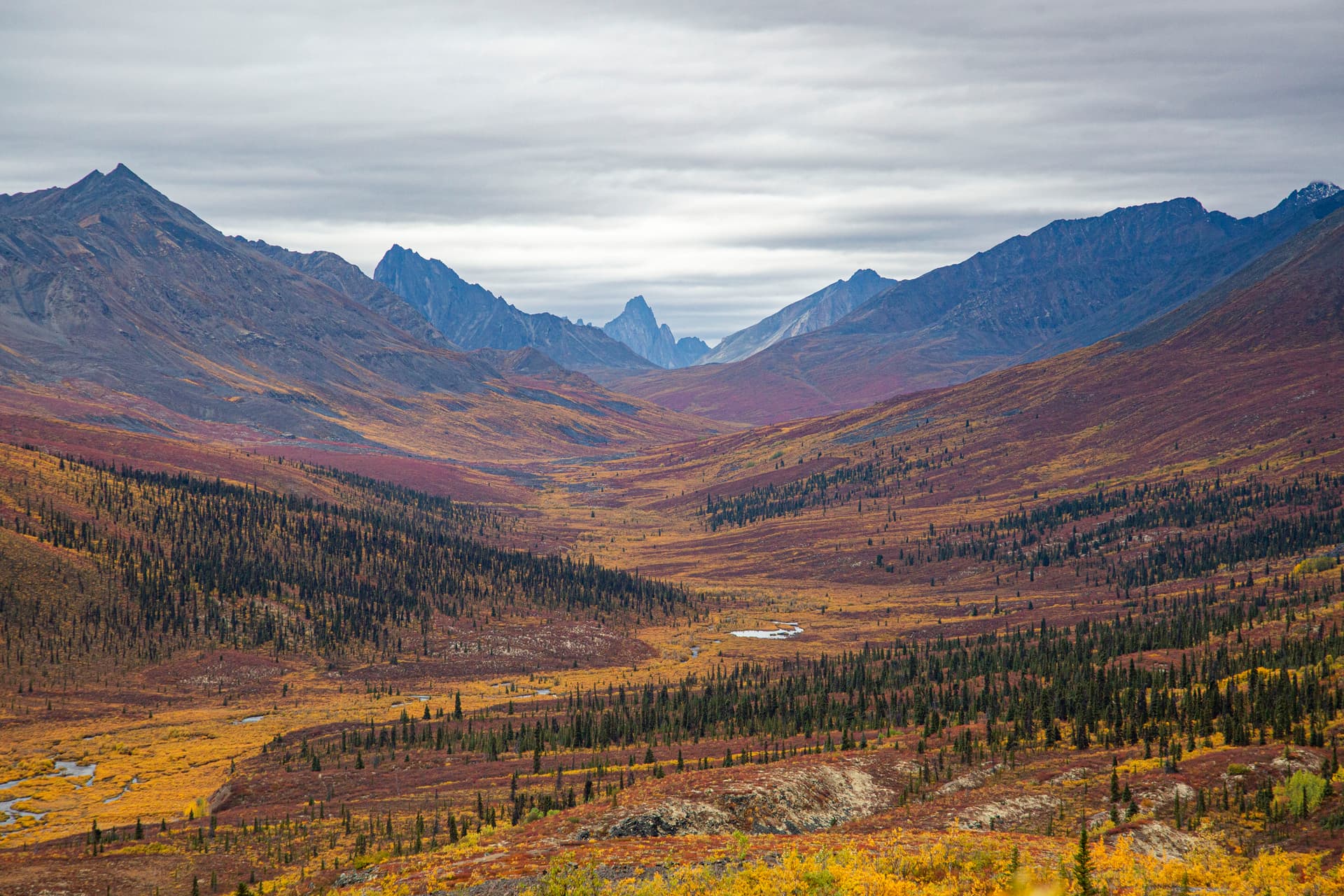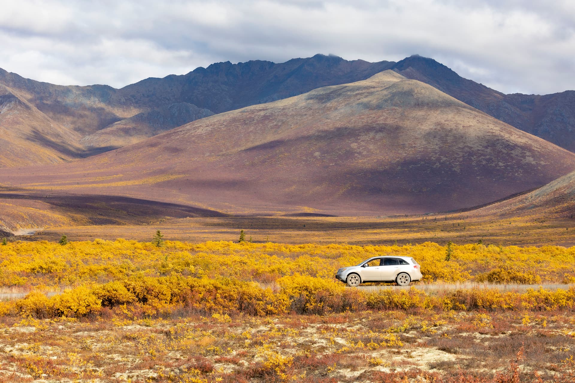 这条路基本上是自驾必走之路。相比Fairbanks向北的道尔顿公路,这条路能着实的开到北冰洋边上。八月底是最佳时期,这段时间苔原上一片红色,配上黄色和绿色的数目,白色的雪山,如果赶上一个好的蓝天,景色很赞。路况全程碎石路,质量很好。一路向北要穿过一大段无人区,从入口处一直要开到Eagle Plains才能有加油站和住宿。去之前查攻略普遍说是要带俩备胎以防不测,实际走下来觉得普通小轿车也没问题。