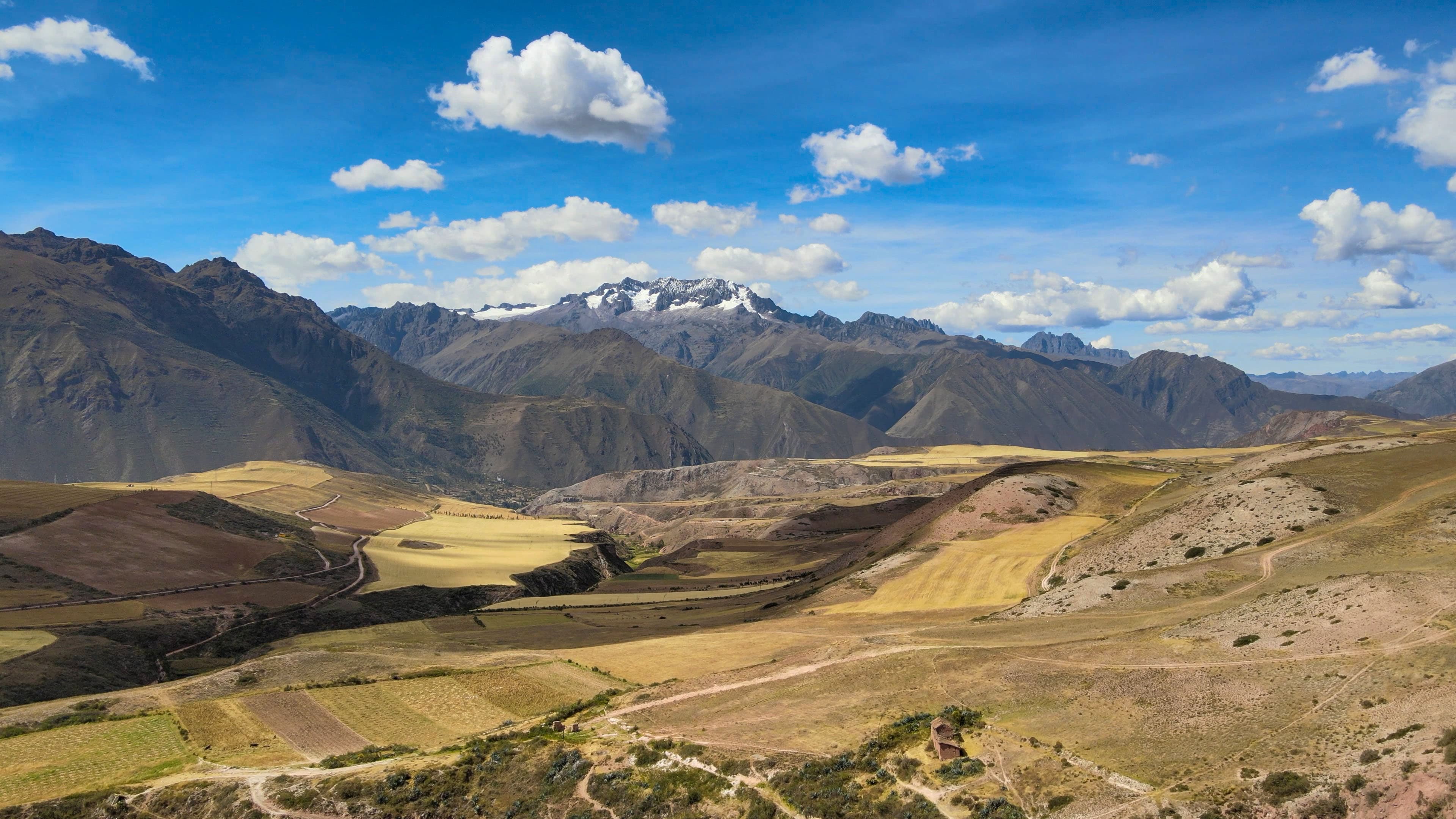 秘鲁最有名的景点应该就是马丘比丘了,一般去马丘比丘都会在库斯科停留,也顺道去去边上的一些景点。Maras盐田和Moray梯田算是常规景点儿,一般都是报个团一日游。我自己开车,从梯田出来以后,没有按照常规的道路回去,而是继续往前走,沿着土路一路向北翻山到乌鲁班巴河畔的Pachar,之后沿着河边公路开到了乌鲁班巴。这一段山上的景色不错,金色的麦田和远处的雪山呼应。