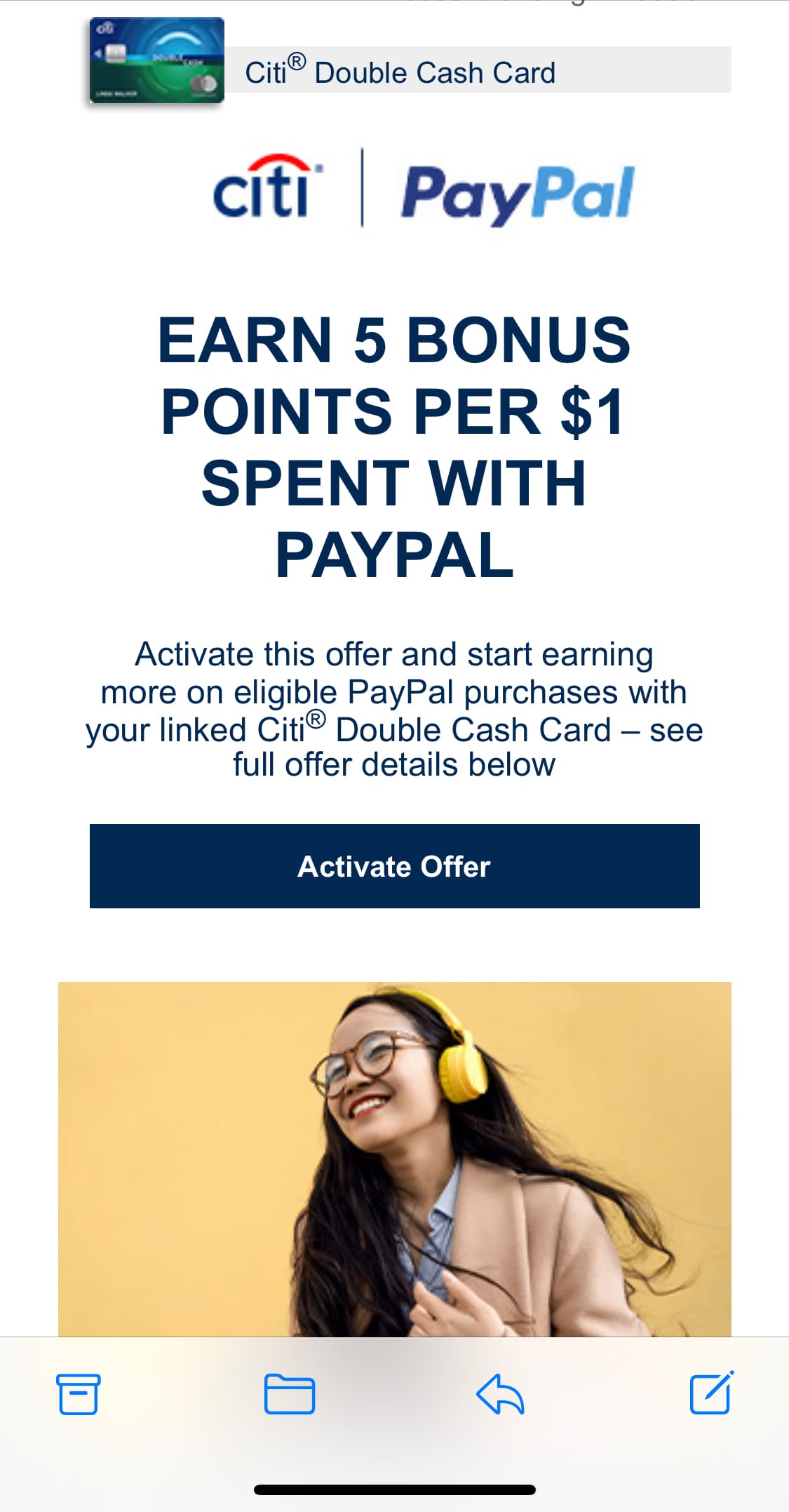 Starting with your next purchase, you will earn $20 back as a statement credit after you spend $200 on eligible PayPal purchases you make with your linked Citi® Double Cash Card.