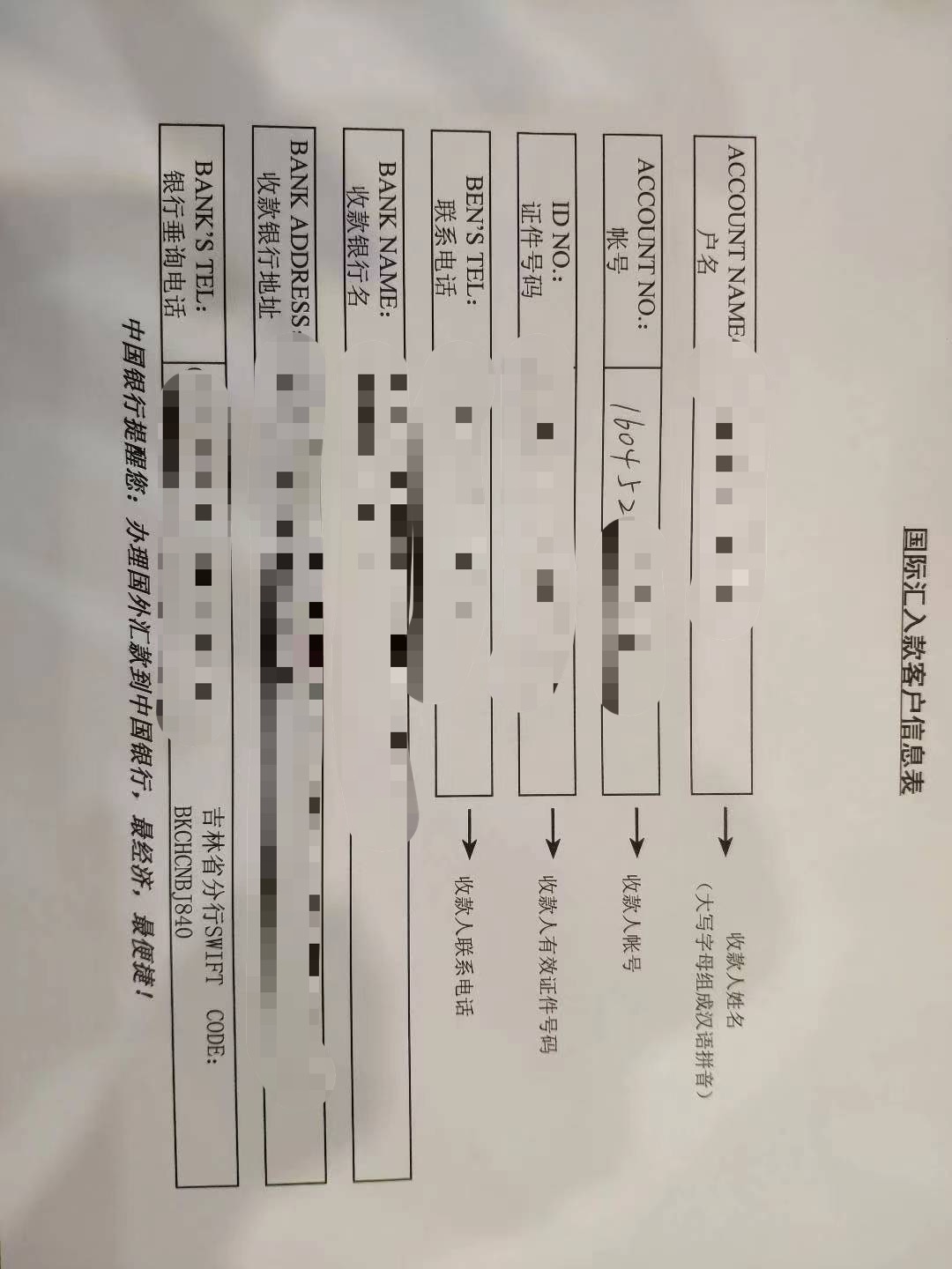 汇回国内账户就填debit card #就可以了