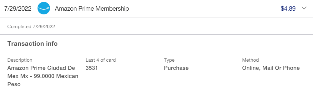 US Bank的信用卡被盗刷了一笔墨西哥Amazon Prime的会员费,只要$4.89。已经dispute换卡一条龙了